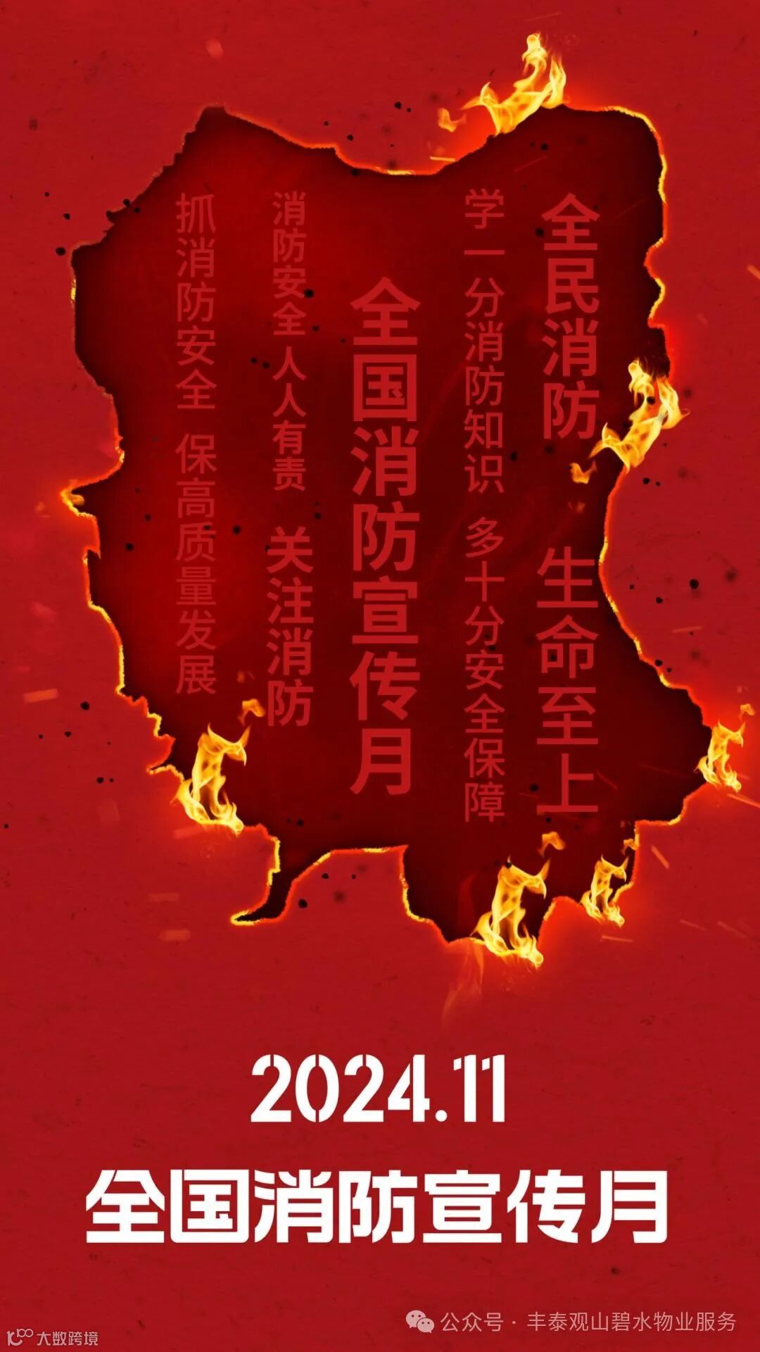 2024年11月9日是我国第33届“消防活动日”,为传播消防安全思想,普及小区业主消防安全知识,强化消防意识,同时提高自身工作人员消防安全技能,观山客户服务中心于11月8日在小区开展主题为“全民消防,生命至上”的一系列消防宣传活动。