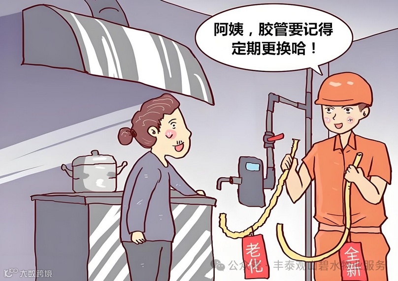 胶管应18个月更换一次,防止出现龟裂、老化、发硬发脆的情况;要定期检查,防止鼠咬。胶管不宜超过2米,两端要用管箍卡紧;同时胶管不能高出灶台,以免被炉火烘烤引发事故。