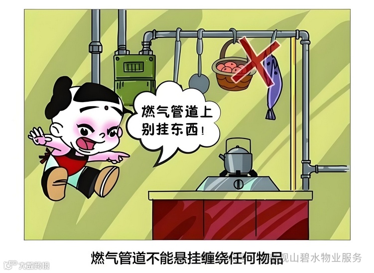 不准在燃气设施上栓绑绳索、电线或吊挂物品,燃气设施周边禁止燃放鞭炮。