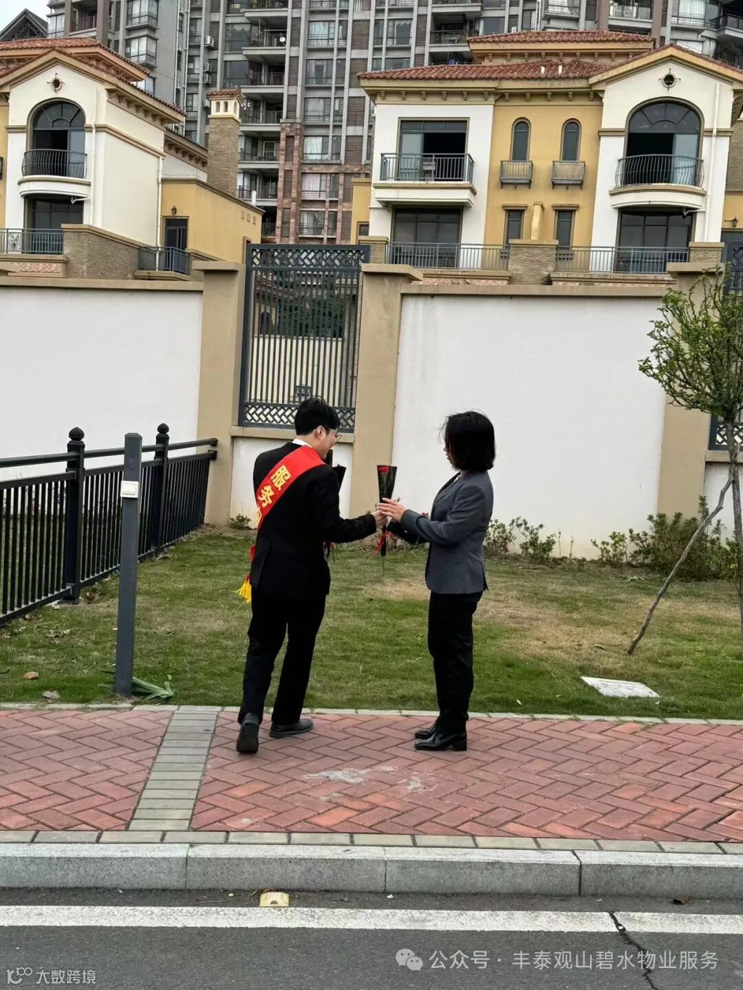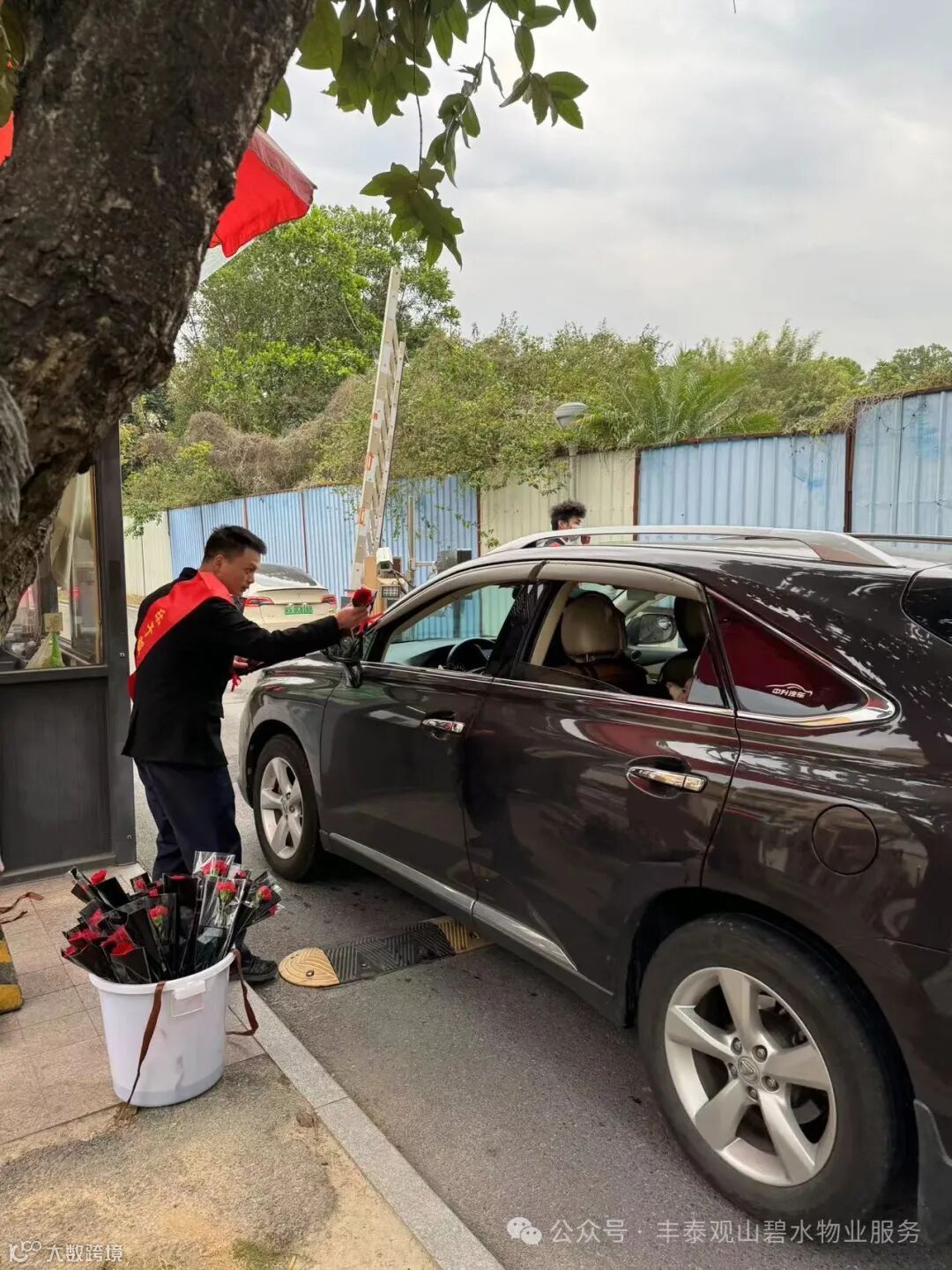初春三月,春回大地,伴随着融融的春意,我们迎来了一年一度的“三八妇女节”。为表达对女性业主的祝福和敬意,丰泰观山客户服务中心为小区女性业主在各门岗出入口精心组织了派送鲜花活动。