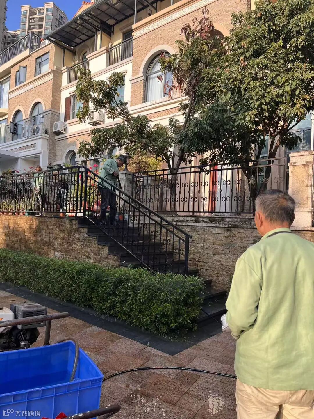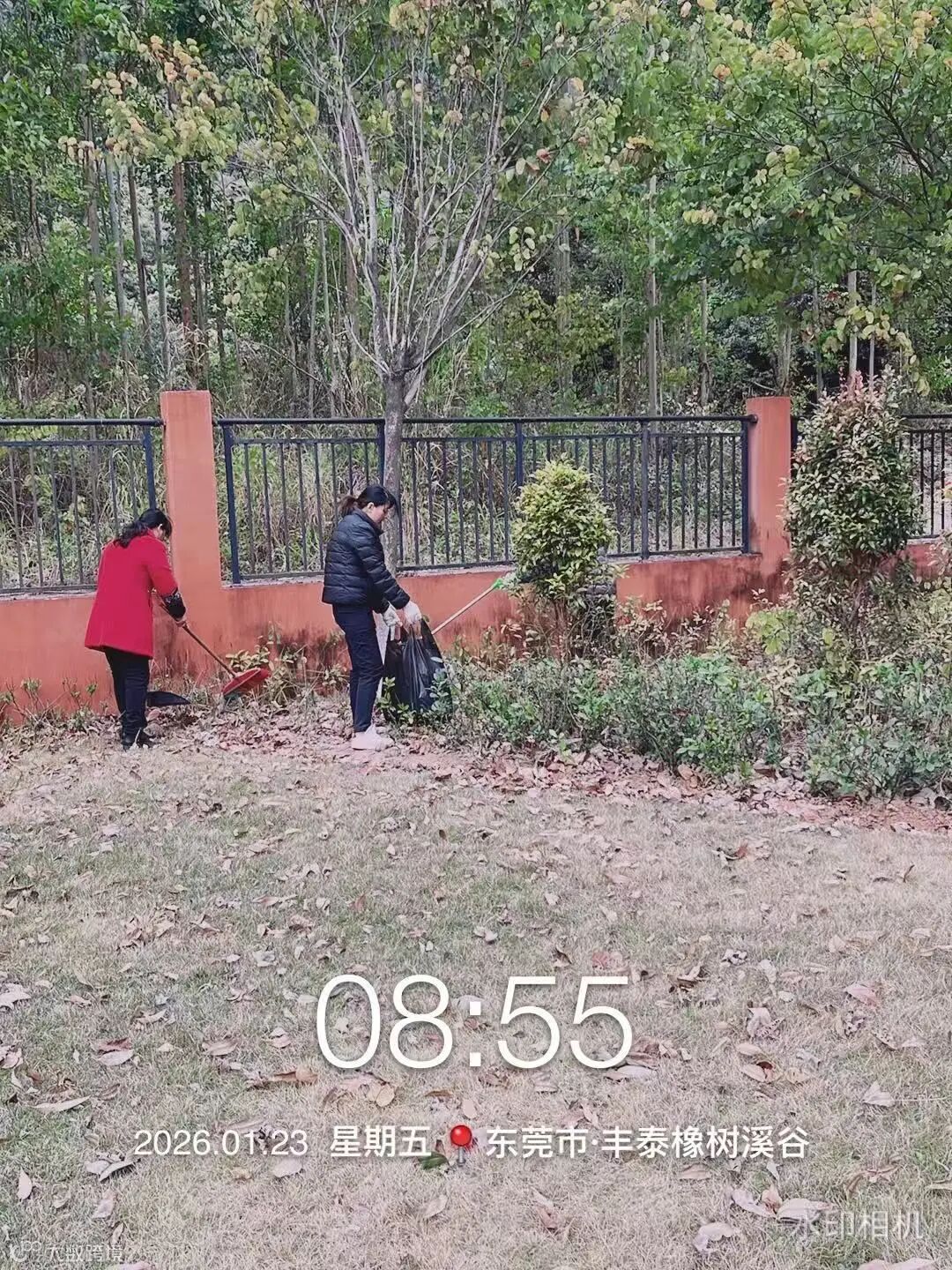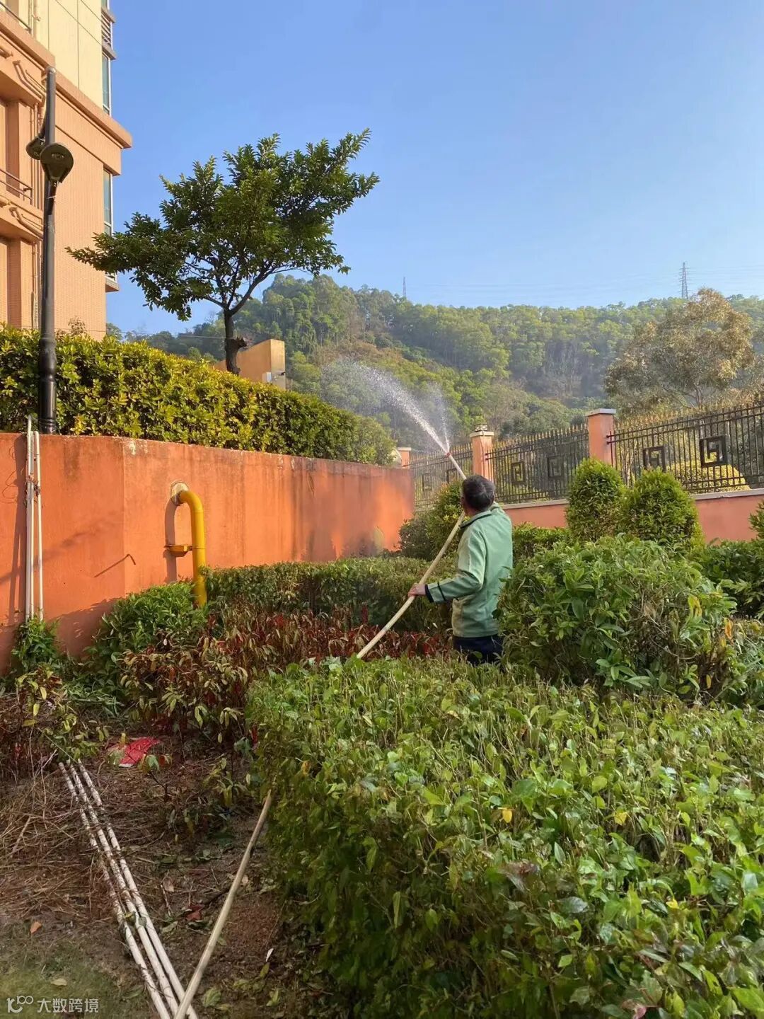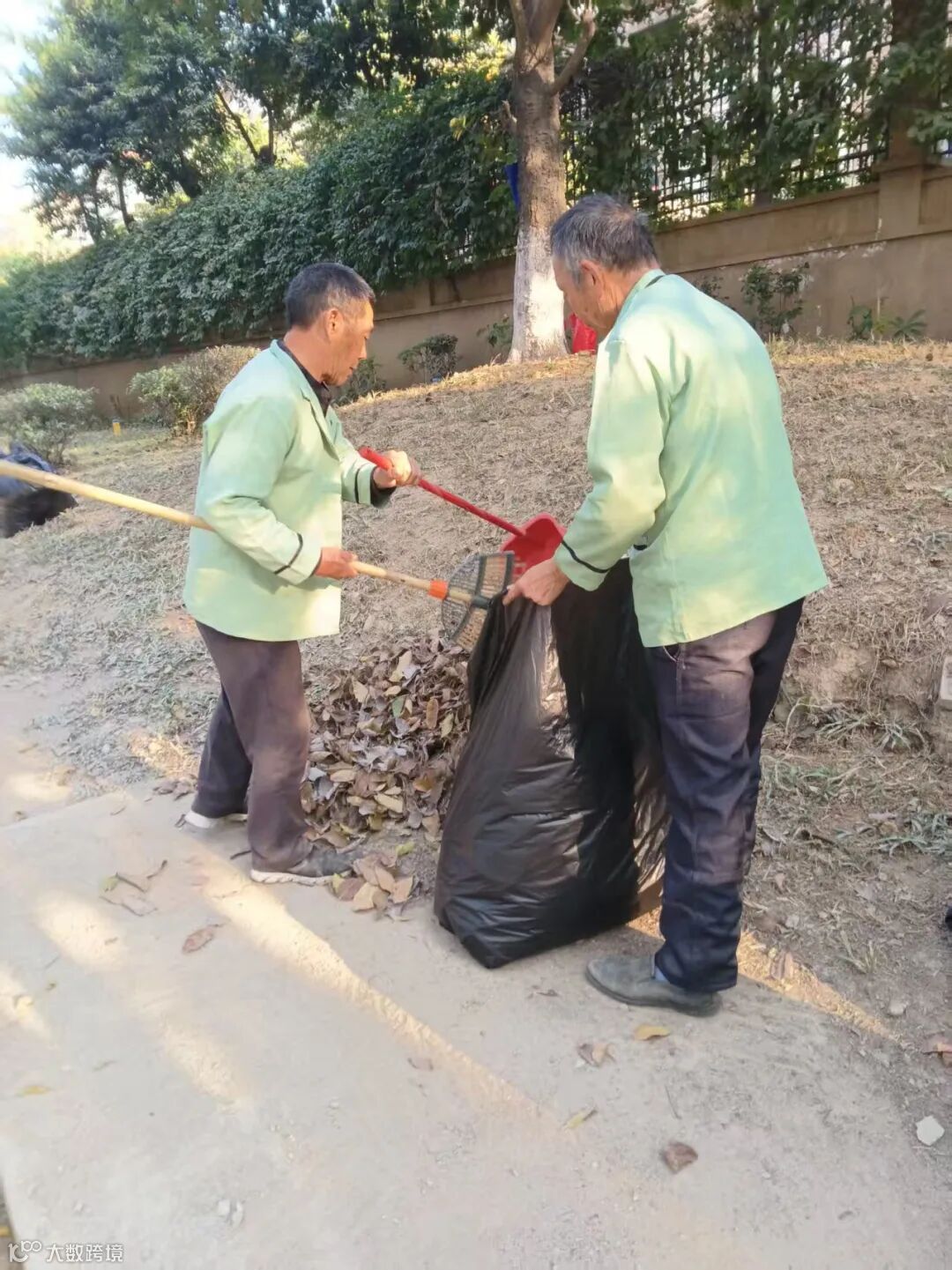 别墅外围绿化枯叶及白色垃圾清理