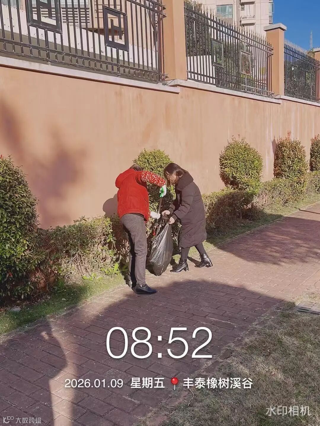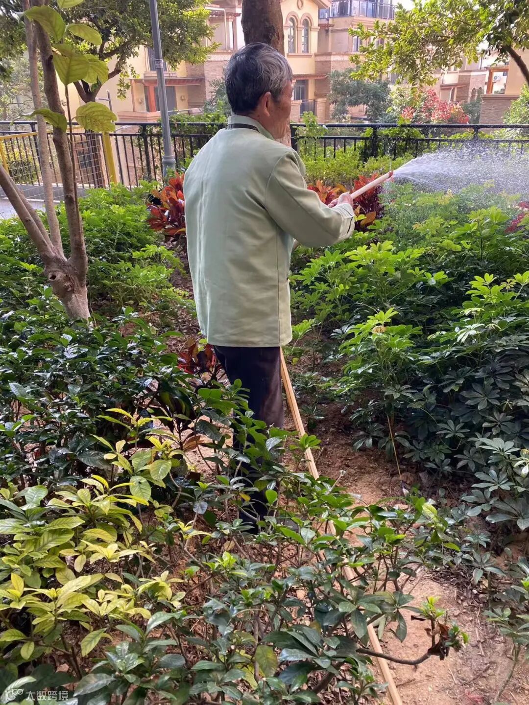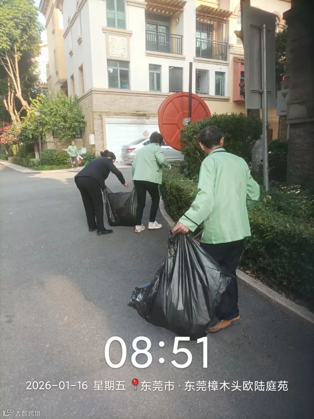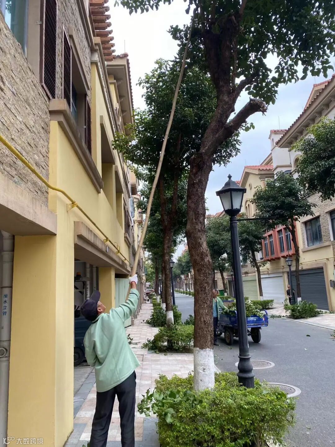 别墅外围绿化枯叶及白色垃圾清理