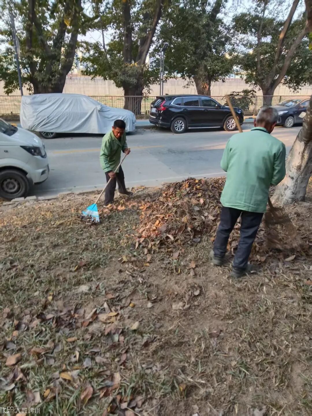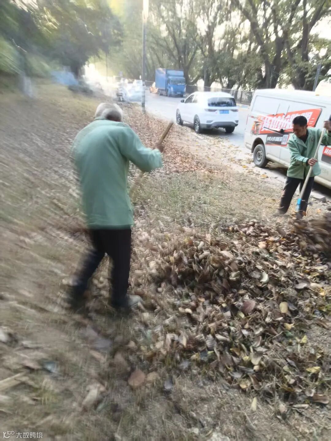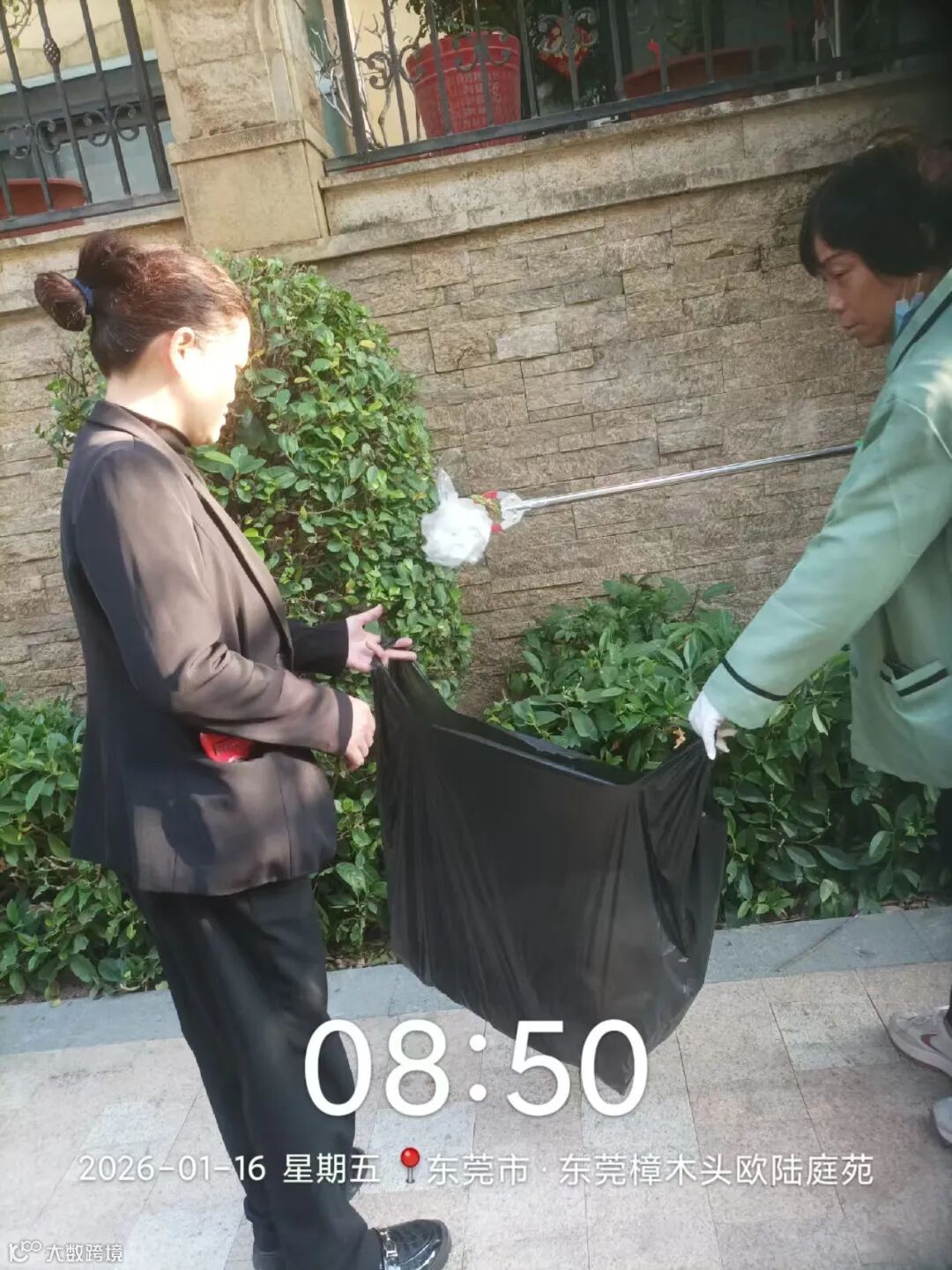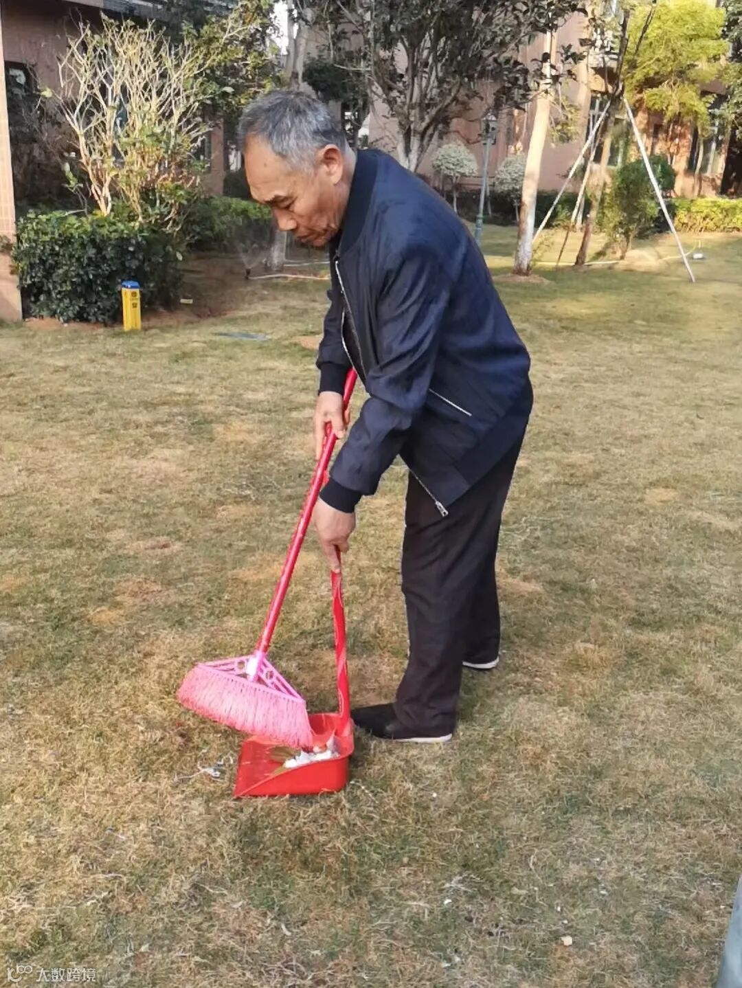 别墅外围绿化枯叶及白色垃圾清理
