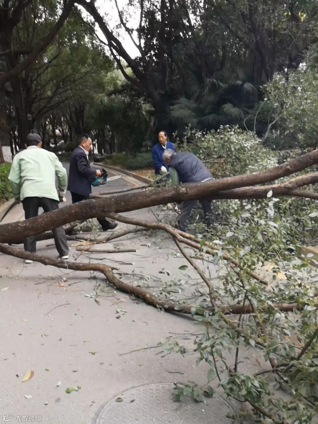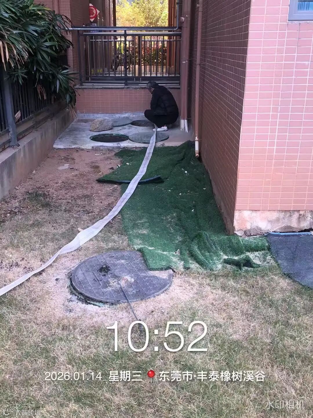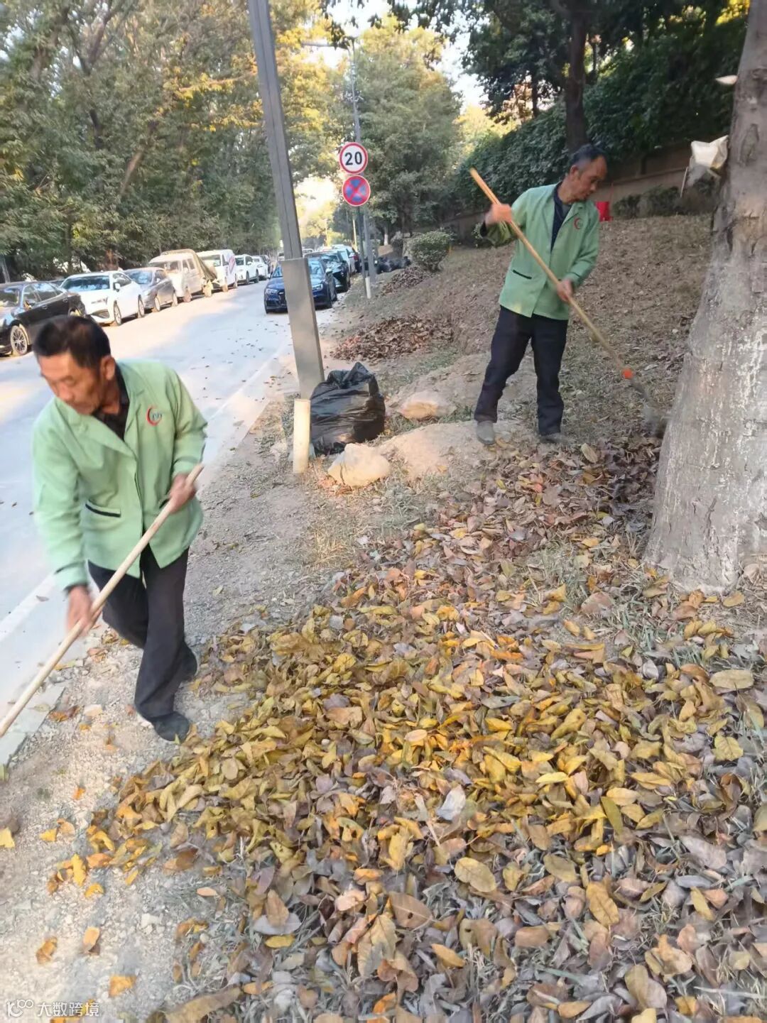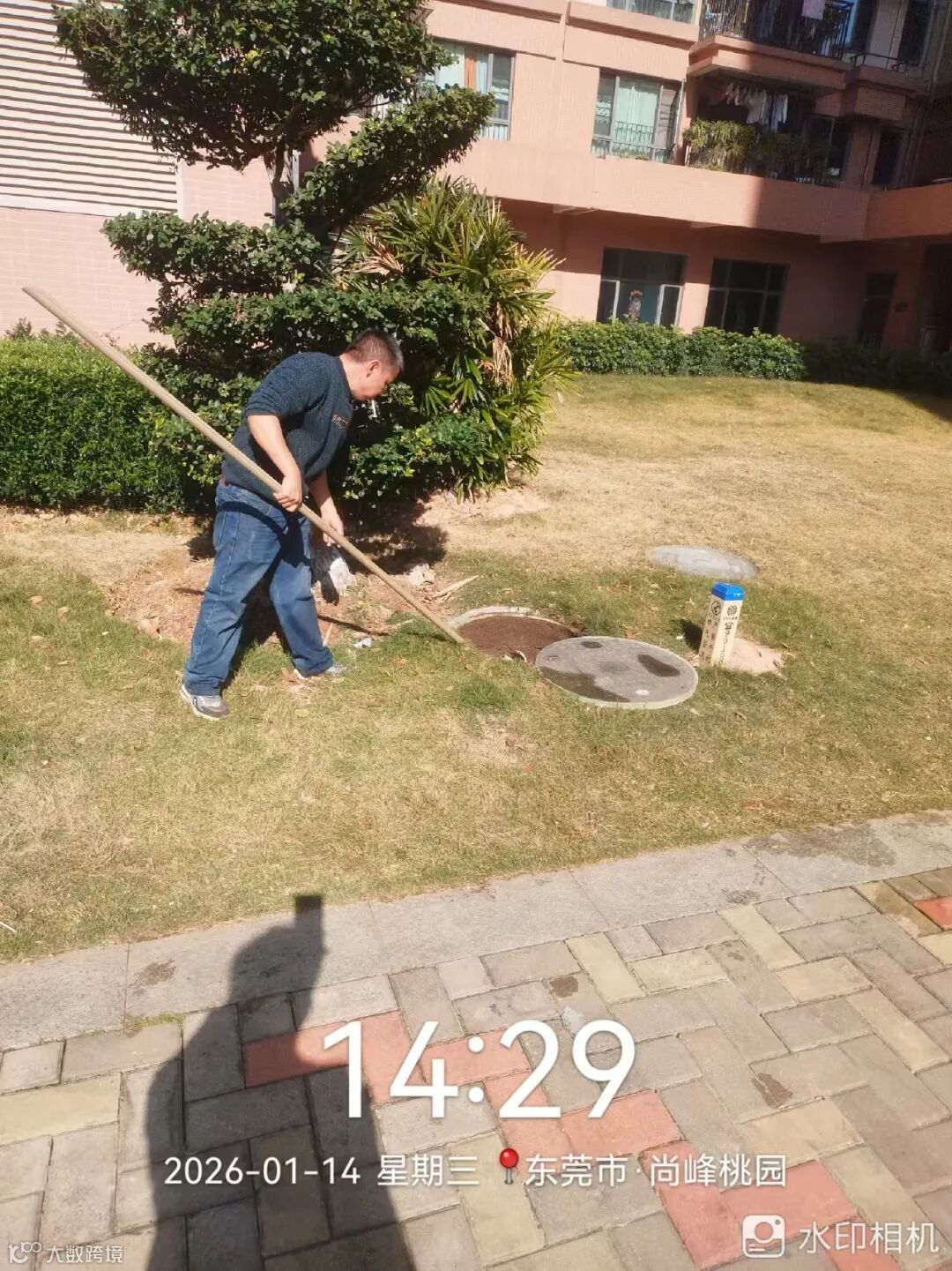 别墅外围绿化枯叶及白色垃圾清理