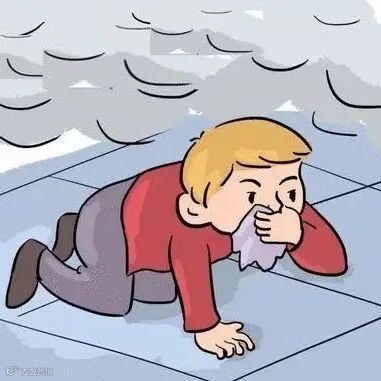 如楼梯间烟火较大或被阻断的情况下,切不可盲目沿楼梯向下逃生,而应在做好安全措施的情况下向天面躲避,如佩戴过滤式防毒面具,或用湿毛巾捂住口鼻弯腰低姿逃生,湿毛巾折叠8层后可隔绝60%的烟气。