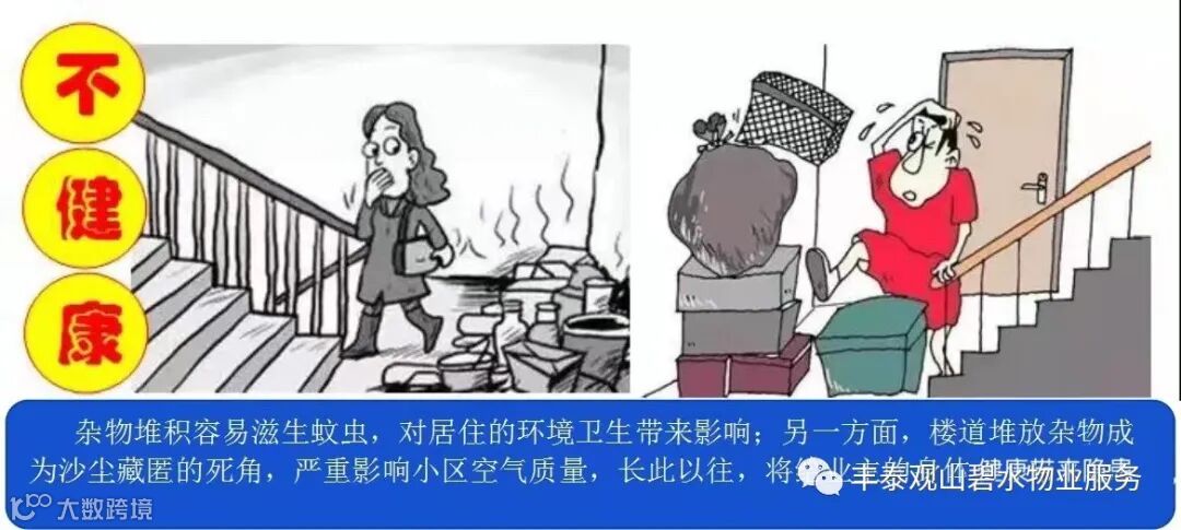 楼道堆放的物品杂物,是对他人合法权益的侵害;高空坠物,会带来意外伤害。一旦造成事故,物主将承担相应的法律责任。特此通知,请互相转告。