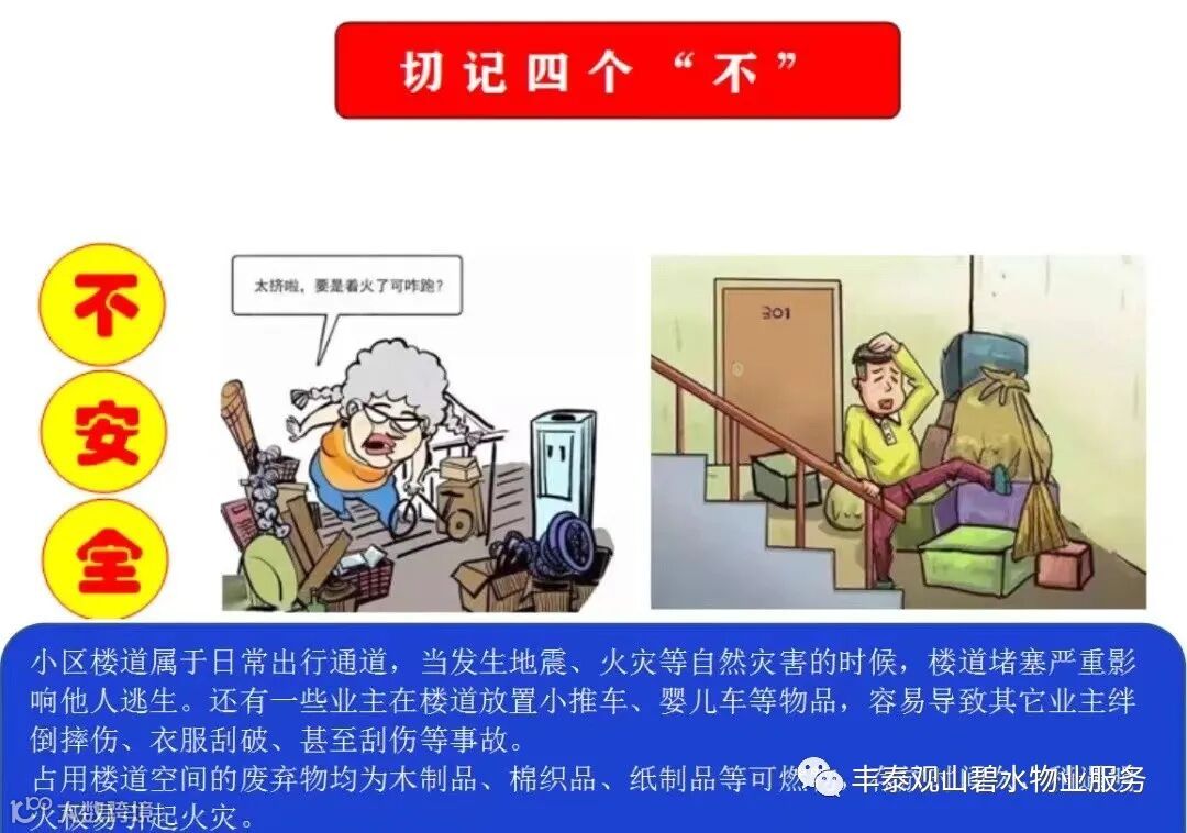根据消防安全要求,请住户务必将堆放在楼道内有用的物品搬回家中,将不用物品、杂物及垃圾自行清理出楼道。窗外、阳台栏杆外、空调架上,不要放置各类物品。教育小孩燃放烟花炮竹时远离易燃易爆物,更不要将烟花炮竹扔进下水井、管道、化粪池,以免发生爆炸,危及生命安全、财产损失。