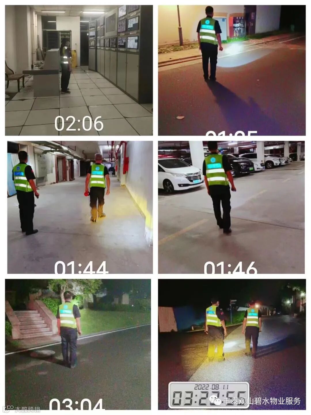 1、小区进行夜间巡查,安全意识不放松,时刻保障小区安全。
