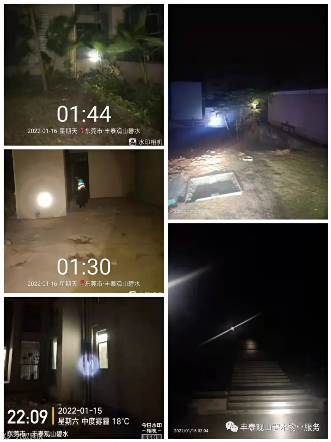1、加强夜间巡查,安全意识不放松,时刻保障小区安全。