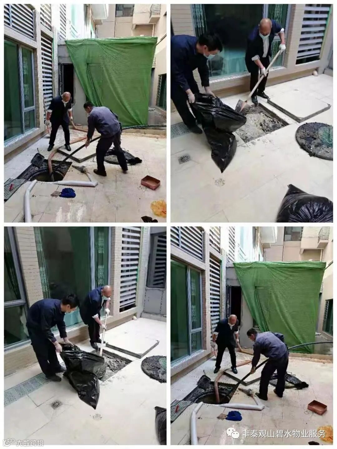 3、工程人员对小区下水井堵塞疏通。
