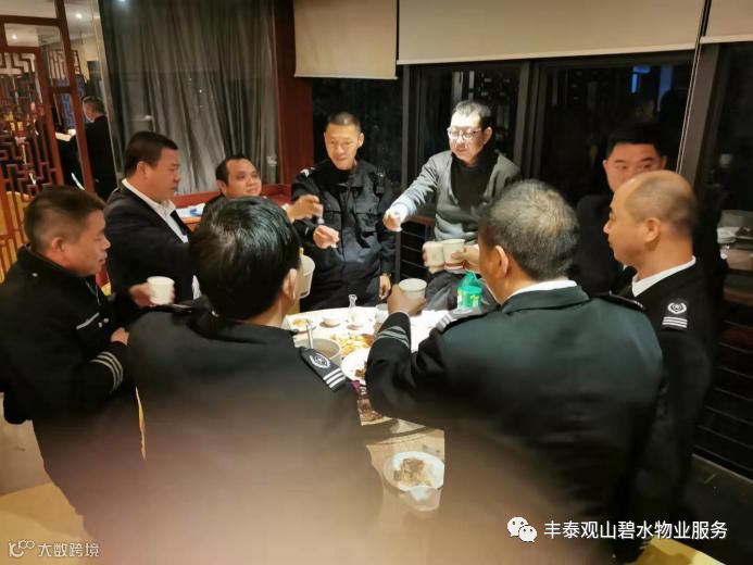 为体现公司对员工的人性化管理和关怀,并以此增进员工对公司的认同度和归属感,使员工真正地融入到公司大家庭当中,进而保持更好的工作心态,与公司共同成长和发展,推进公司企业文化建设,加深企业文化内涵,表示公司对广大员工一年工作的肯定,丰泰观山碧水花园管理处组织举办了2020年员工团拜会(年终聚餐)。