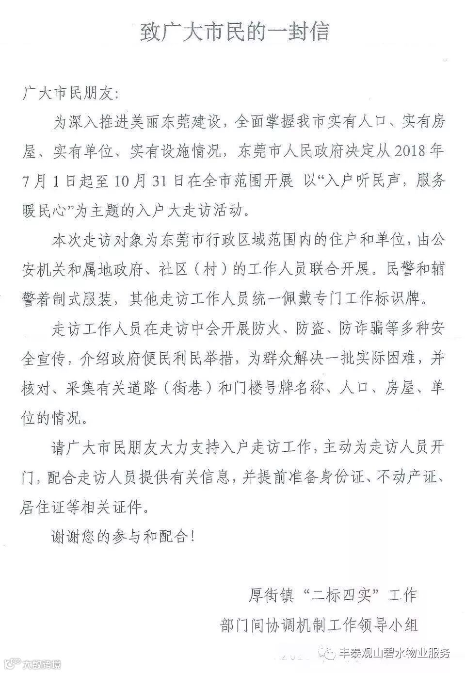 关于《厚街镇“二标四实”基础信息采集工作入户大走访活动》的通知