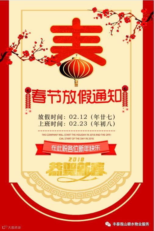 新春佳节将至,丰泰观山碧水全体员工恭祝各位:“新年快乐,万事如意!”
