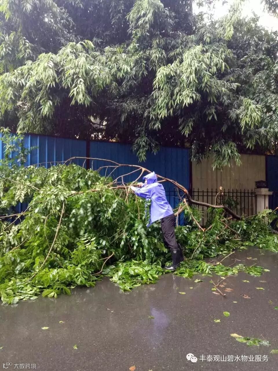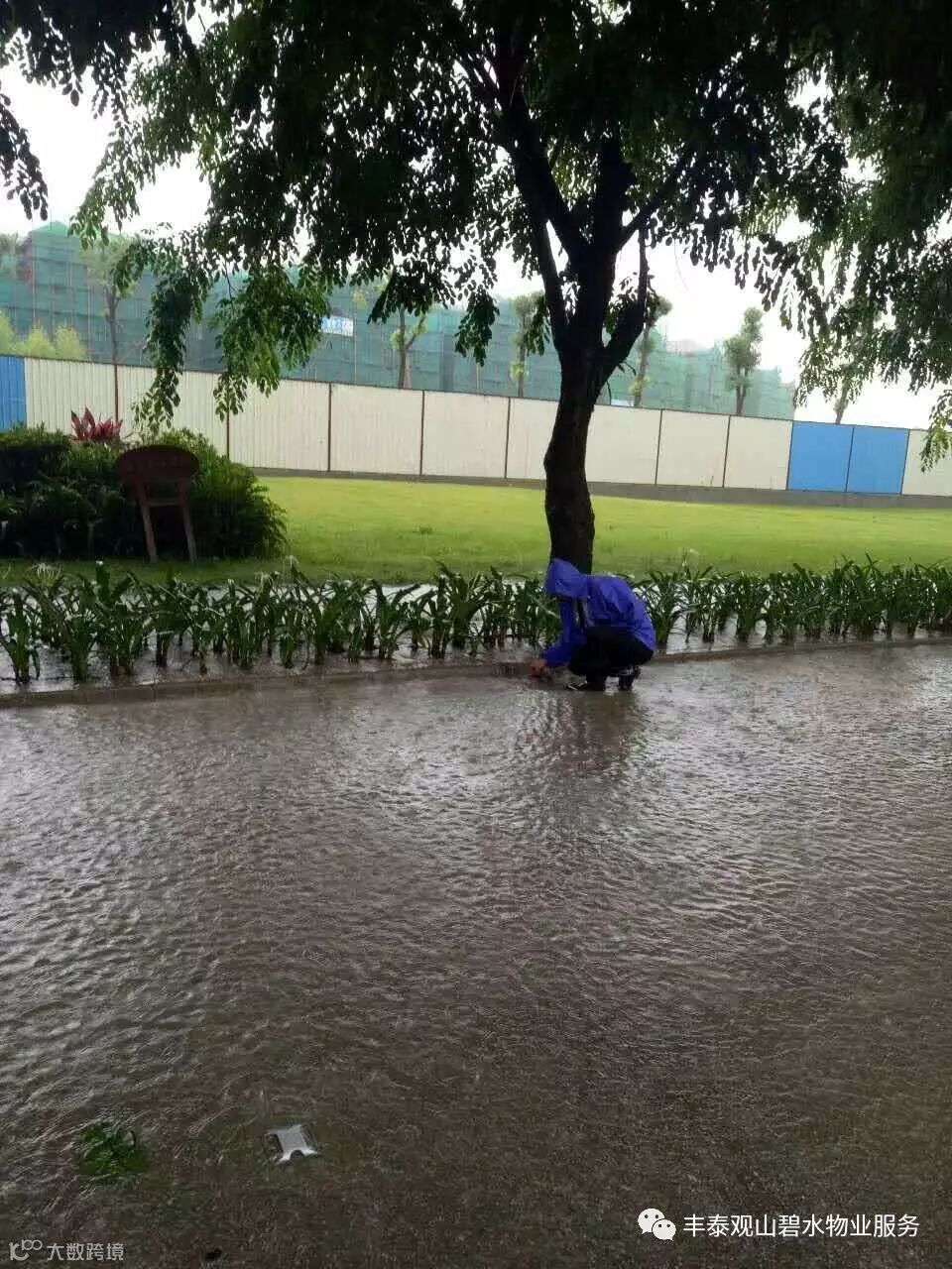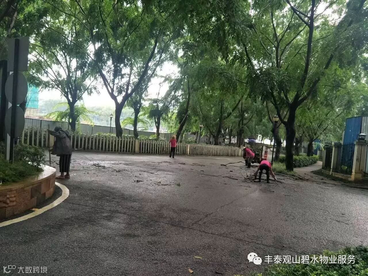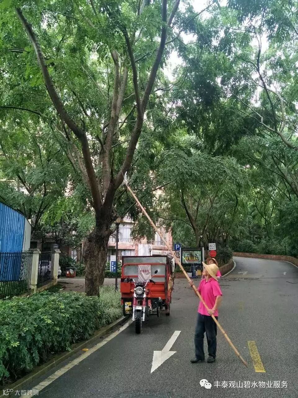 二、下雨期间对地下车库排水设备进行检查,对路面树木的断枝进行清理,保障业户的通行顺畅。