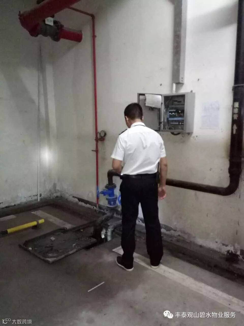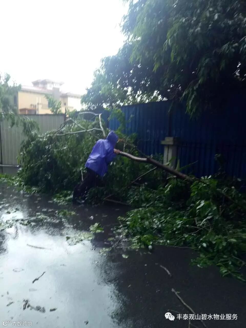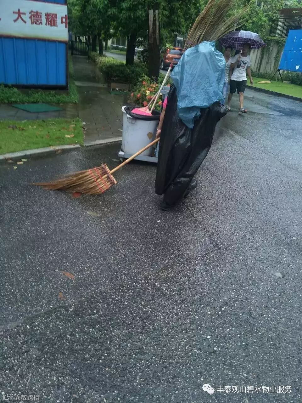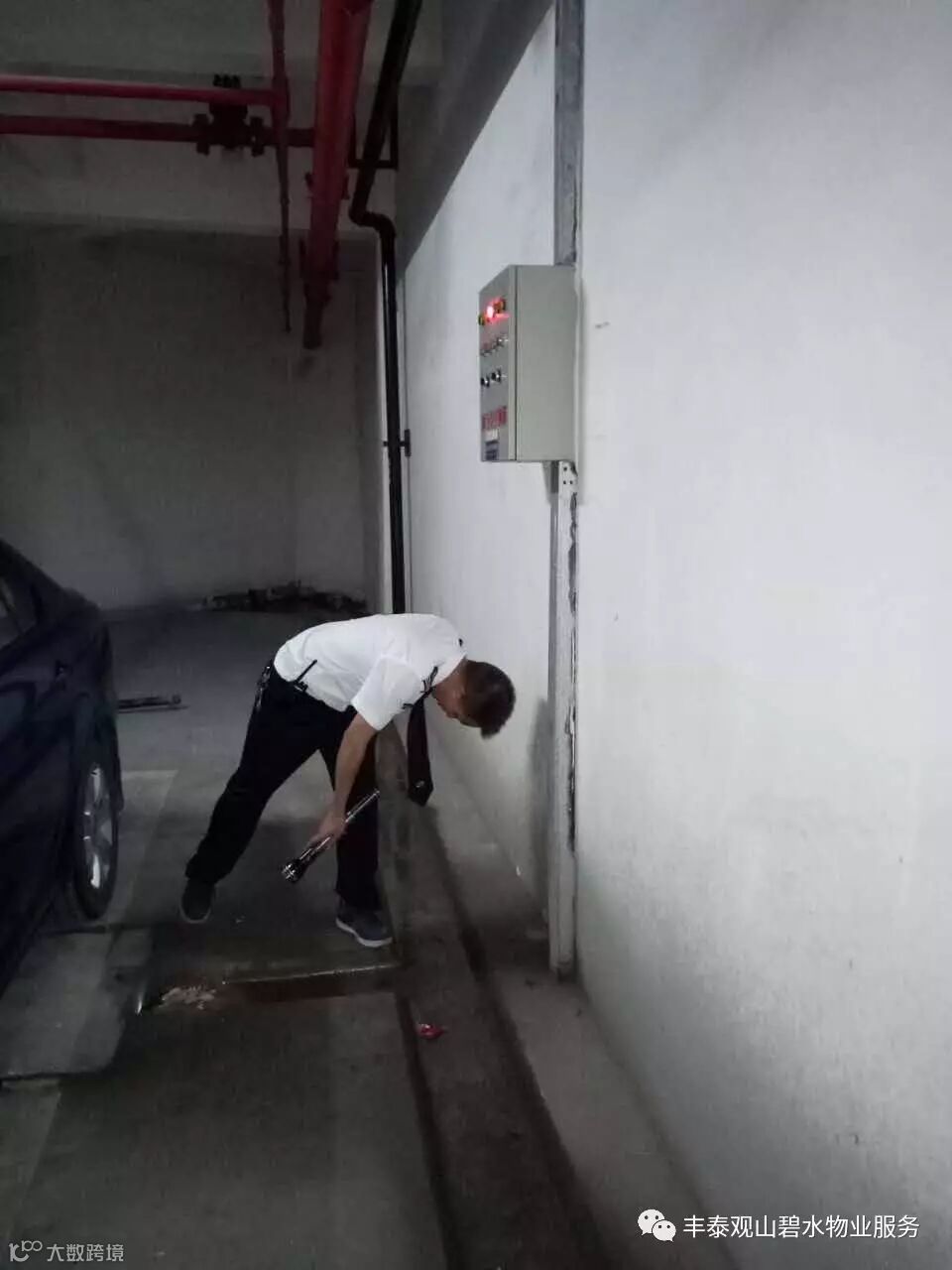 二、下雨期间对地下车库排水设备进行检查,对路面树木的断枝进行清理,保障业户的通行顺畅。