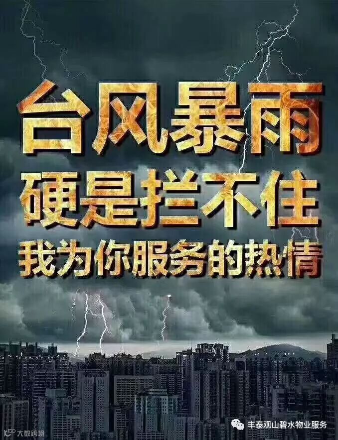 台风天气!请将阳台上花盆和其它有可能吹落的东西放到安全地带,以免对楼下停放的汽车和路过的行人造成伤害,特别提醒:车辆尽量停放在空旷的地方,勿将车辆停放在洼地带以免水浸!友情提醒,打扰了