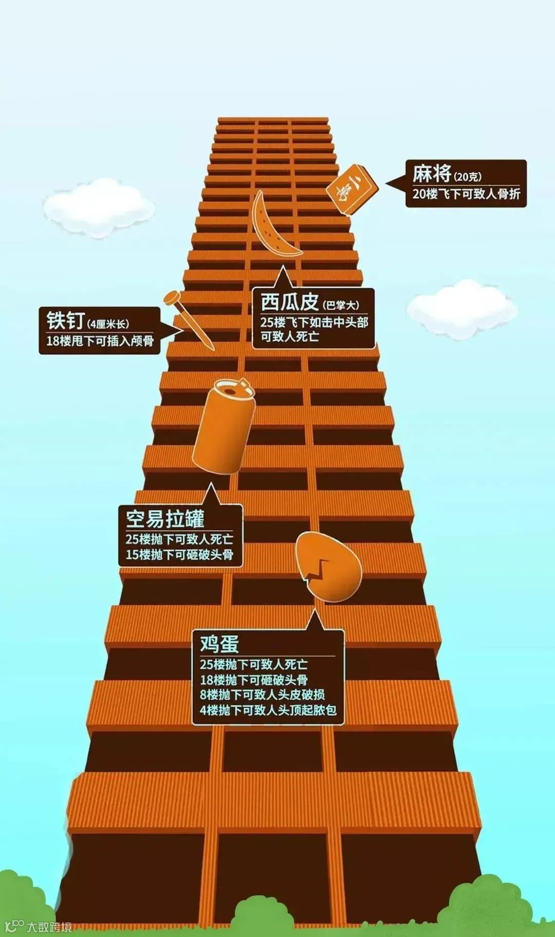 高空抛物现象被称为"悬在城市上空的痛"。近年来有关高空抛物构成的人身伤害事件频发,轻者受伤、重则死亡。从高楼上将东西抛下的伤害力究竟有多大?