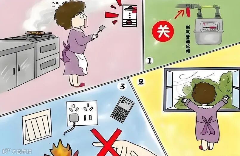 如果发现燃气灶附近有异味,一定要立即开窗,并及时到安全地带拨打电话报警。同时,严禁各种火种进入室内,更不能开/关电灯、抽烟及在现场拨打电话等,以防引起燃气爆炸。