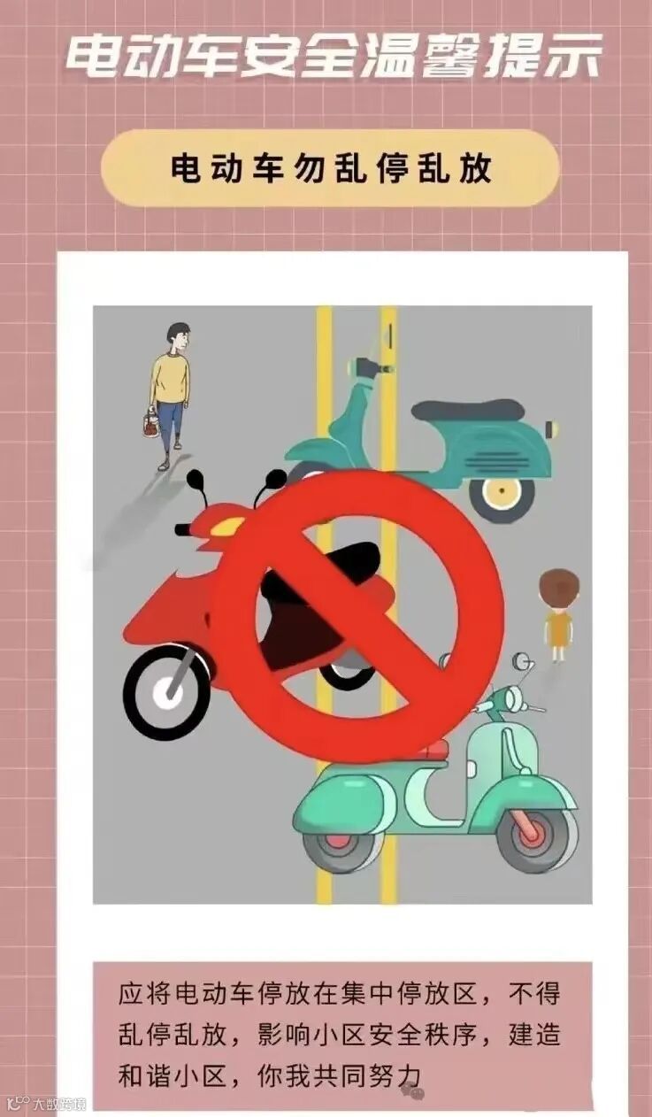 请各位业主将电动车停放指定场所或充电。如您发现周围有电动车火灾隐患和消防安全违法行为时,请及时阻止。