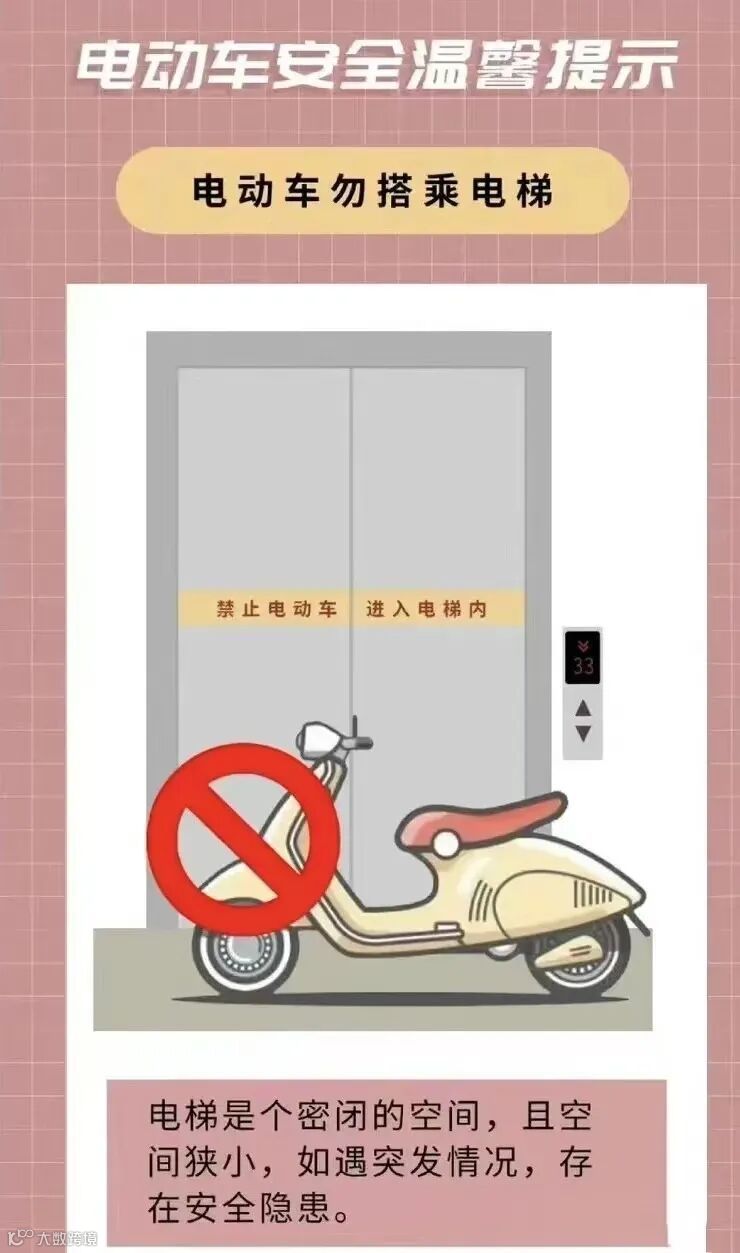如今,电动车俨然成为今下热门工具之一,较于其他交通工具而言,它小巧又方便,体重较轻,不需燃油,但是偏偏这样的它,却成为“楼道杀手”之一。电动车随意停放不仅严重影响他人出行,还造成了消防与救护生命通道拥堵,一旦发生险情,将会造成严重后果,构成犯罪,将会依法追究刑事责任。请大家严格遵守,相互转告监督,共同维护安全家园。