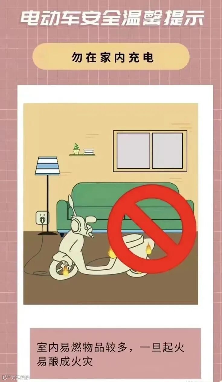 您好!为预防消防安全事故,尤其是电动车爆炸引发火灾情况,导致极为严重的后果。为贯彻“安全第一,预防为主”的指导方针,落实公安部“关于规范电动车停放充电加强火灾防范的通告”要求,消除小区楼道内及户内安全隐患,杜绝因电动车在室内及楼道内充电造成的安全事故,东海城堡物业提醒您: