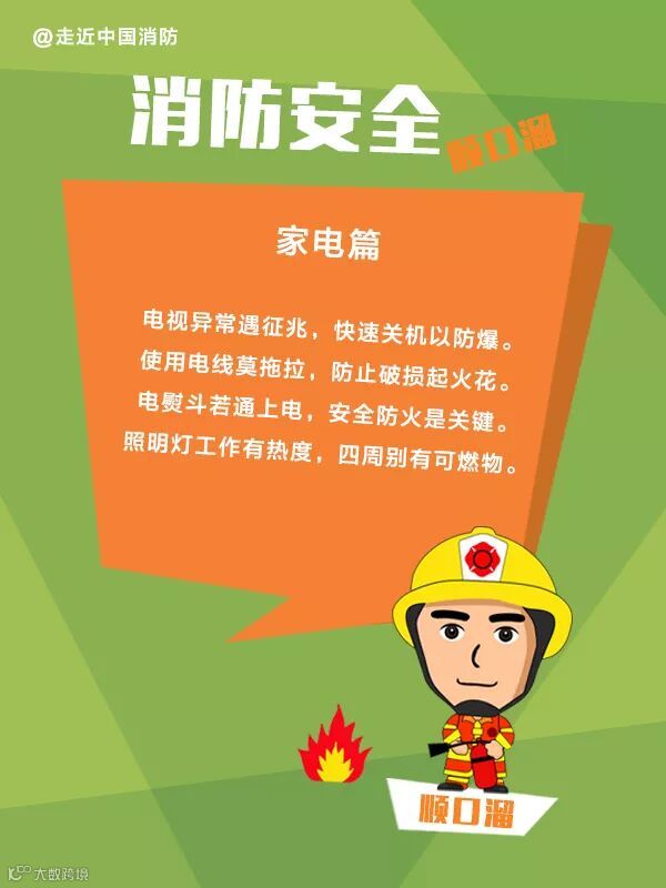 除日常防范外,各类家用电器也是极易引发火灾,需要我们留意关注: