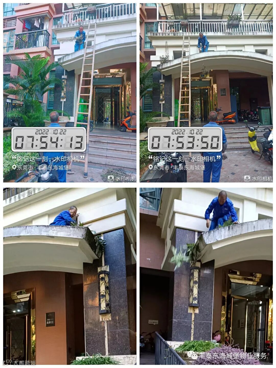 1.大堂门头顶清除杂草。