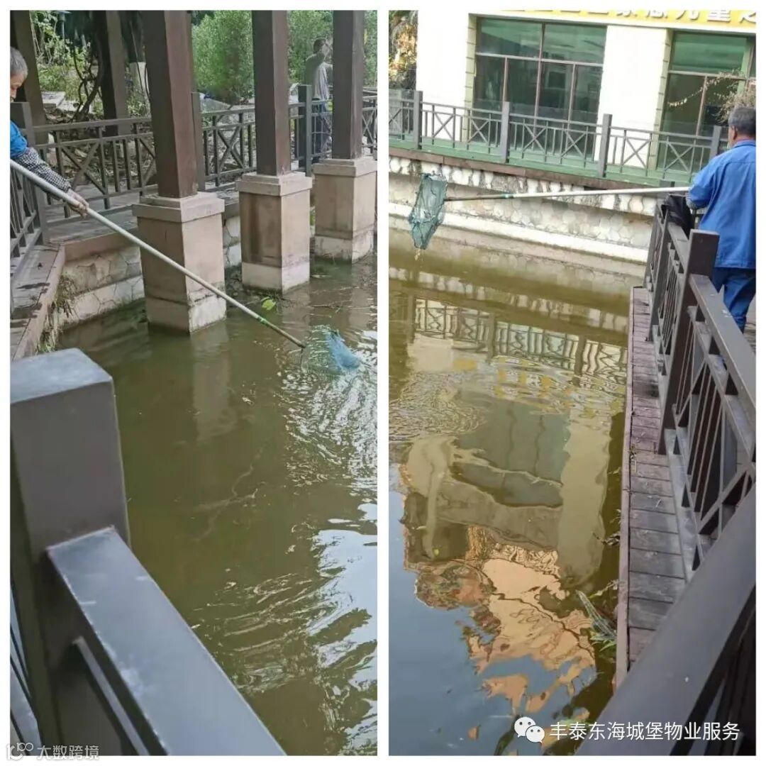 3.清理天鹅湖飘浮物与落叶。