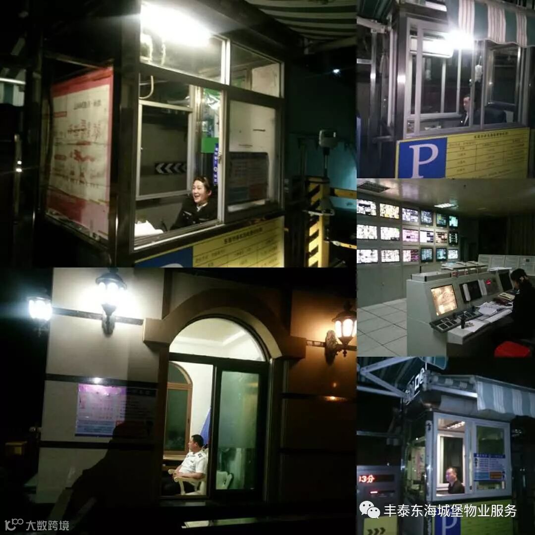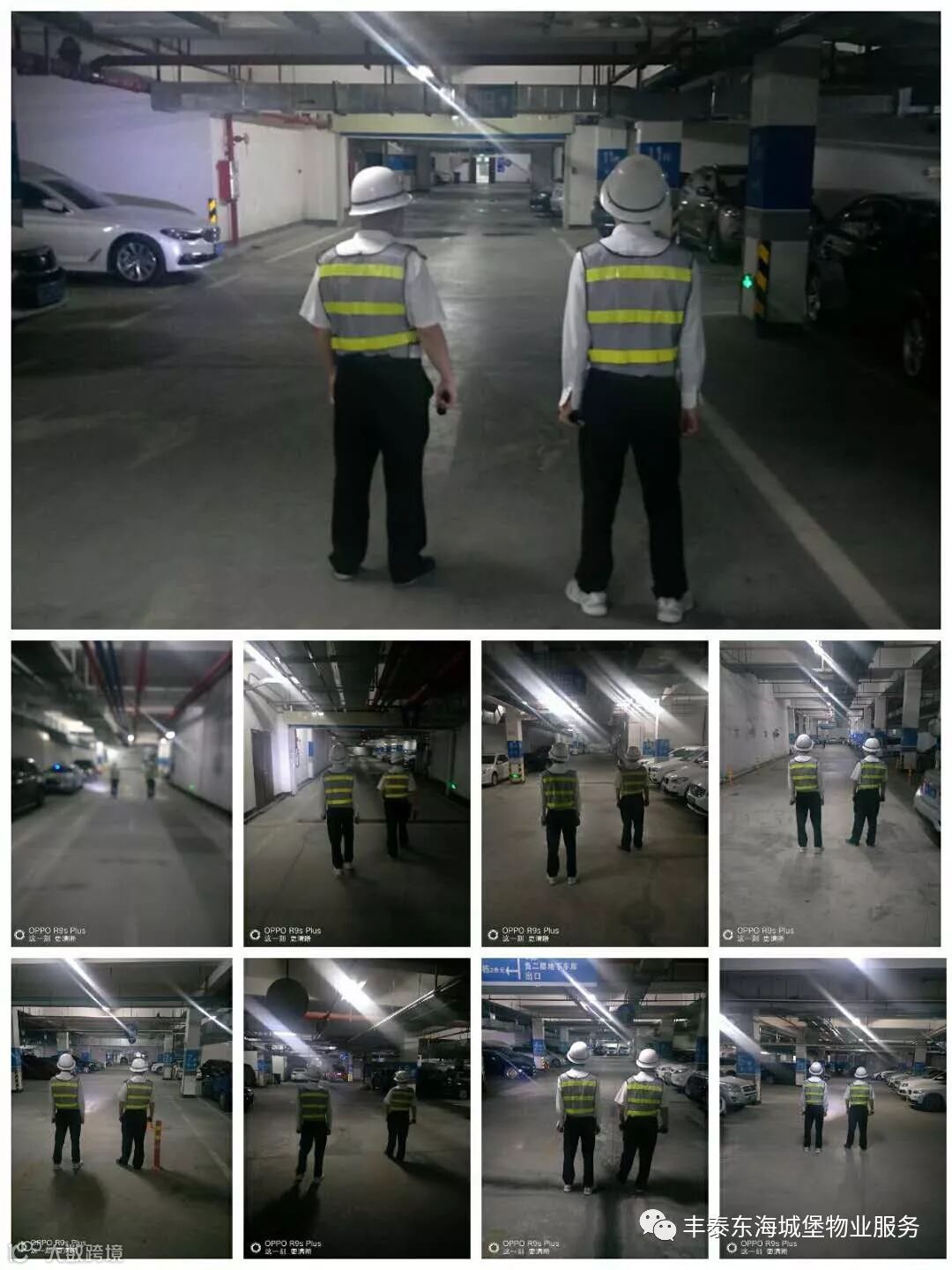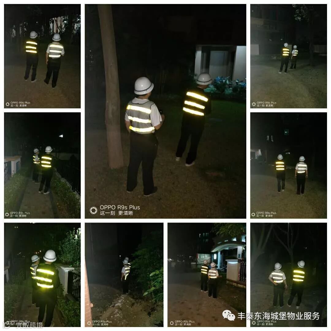 ▲夜间秩序队员对小区楼道、外围、各岗亭值班情况进行巡查▲