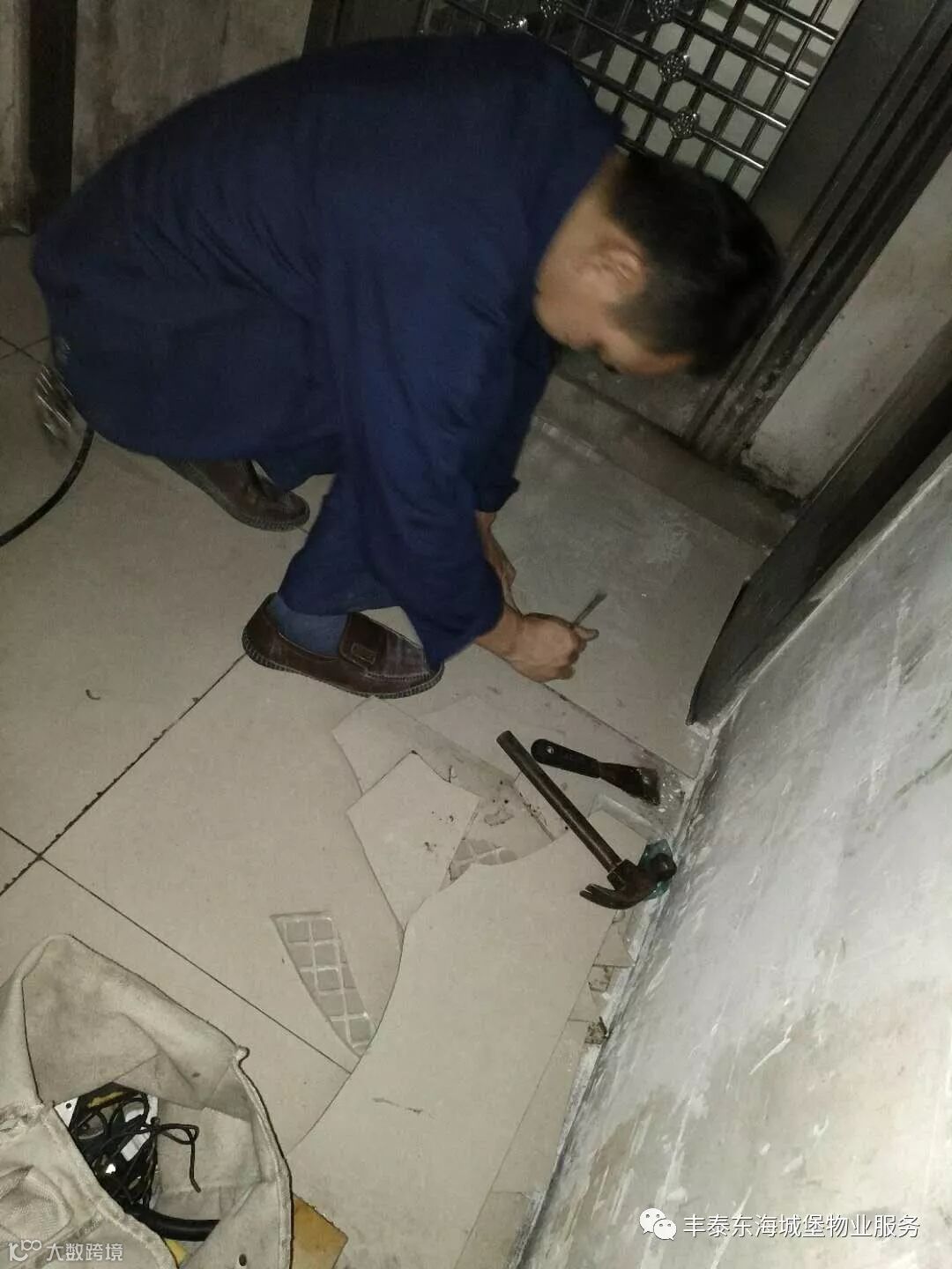 ▲修复15栋广场损坏的瓷砖▲