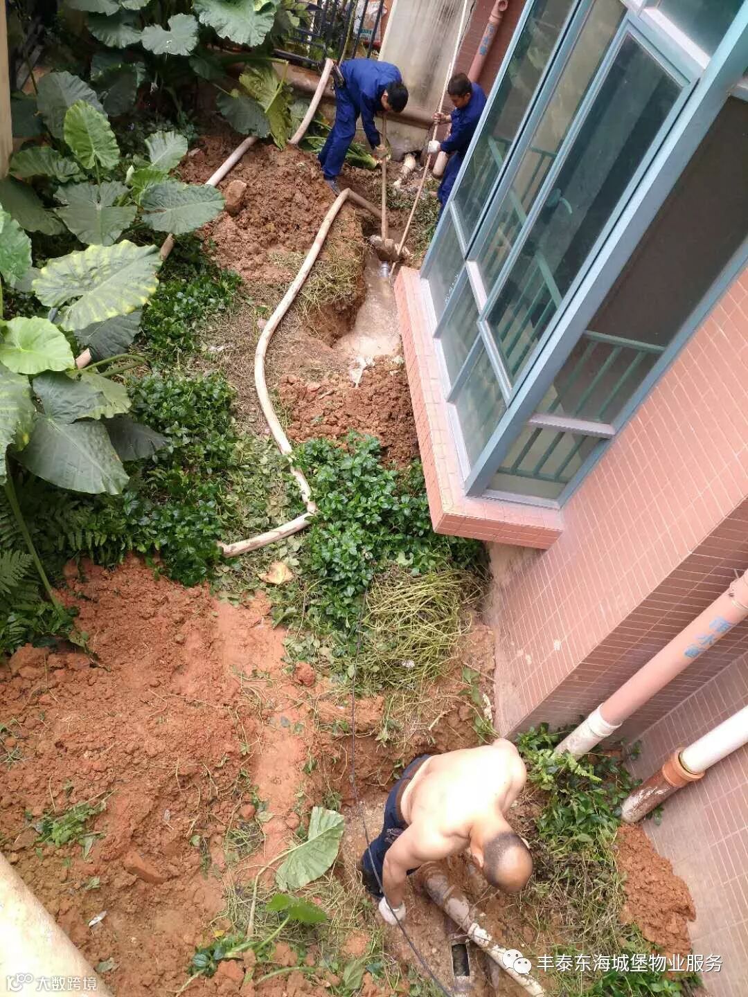 ▲ 跟进处理16栋1单元绿化带排污井▲