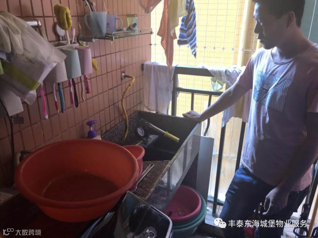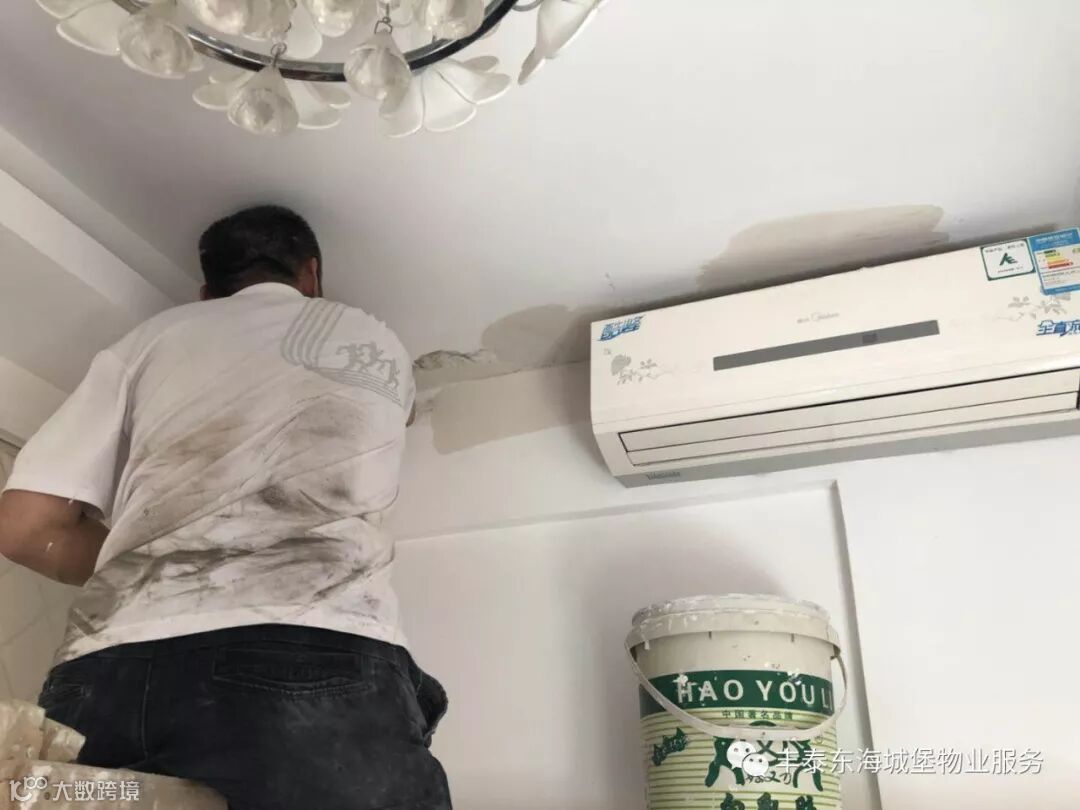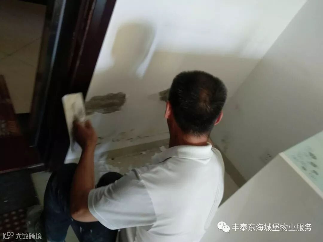 ▲协助漏水业户家里脱灰的进行重新补灰▲