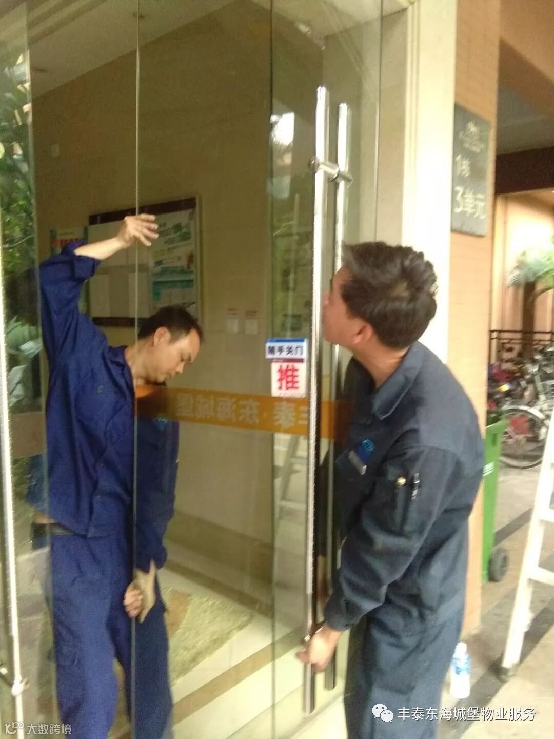 ▲更换1栋3单元大堂玻璃门地弹▲
