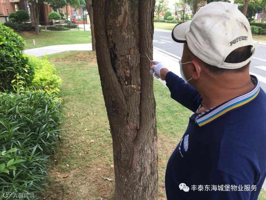 ▲对小区树木进行全面白蚁防治▲