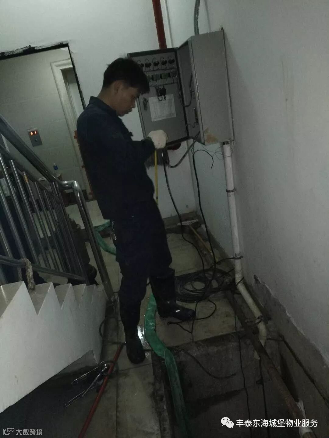 ▲跟进11栋4单元排污泵线路整改▲