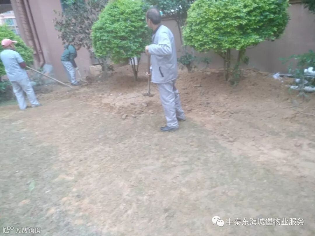 ▲对14栋维修管道后绿化进行补种▲