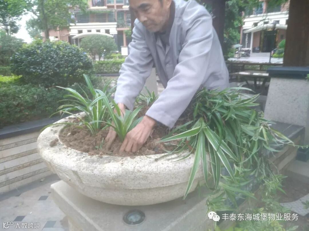 ▲对11栋凉亭花盆进行补种▲