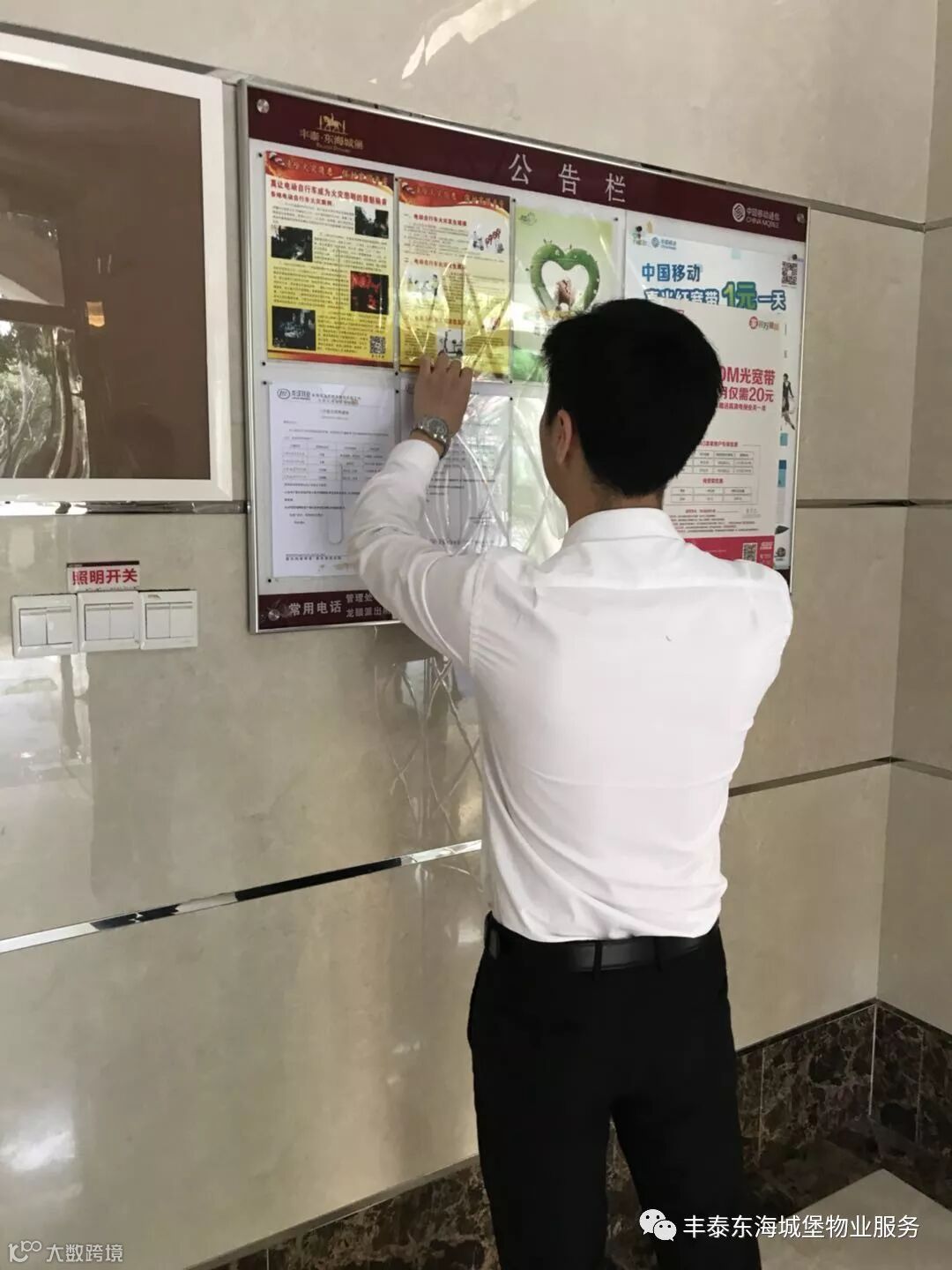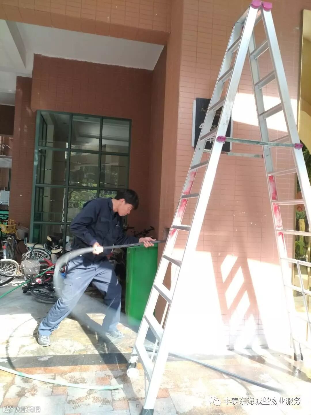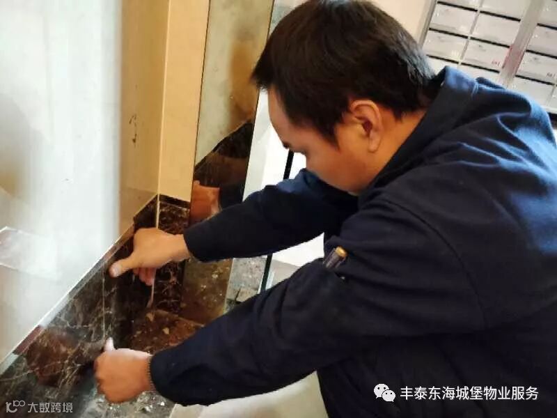▲对单元大堂瓷砖进行修补▲