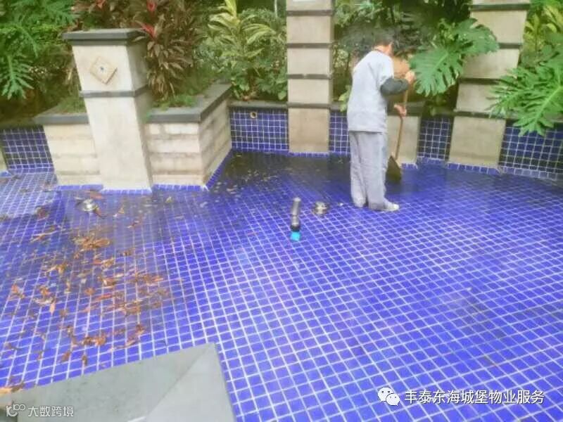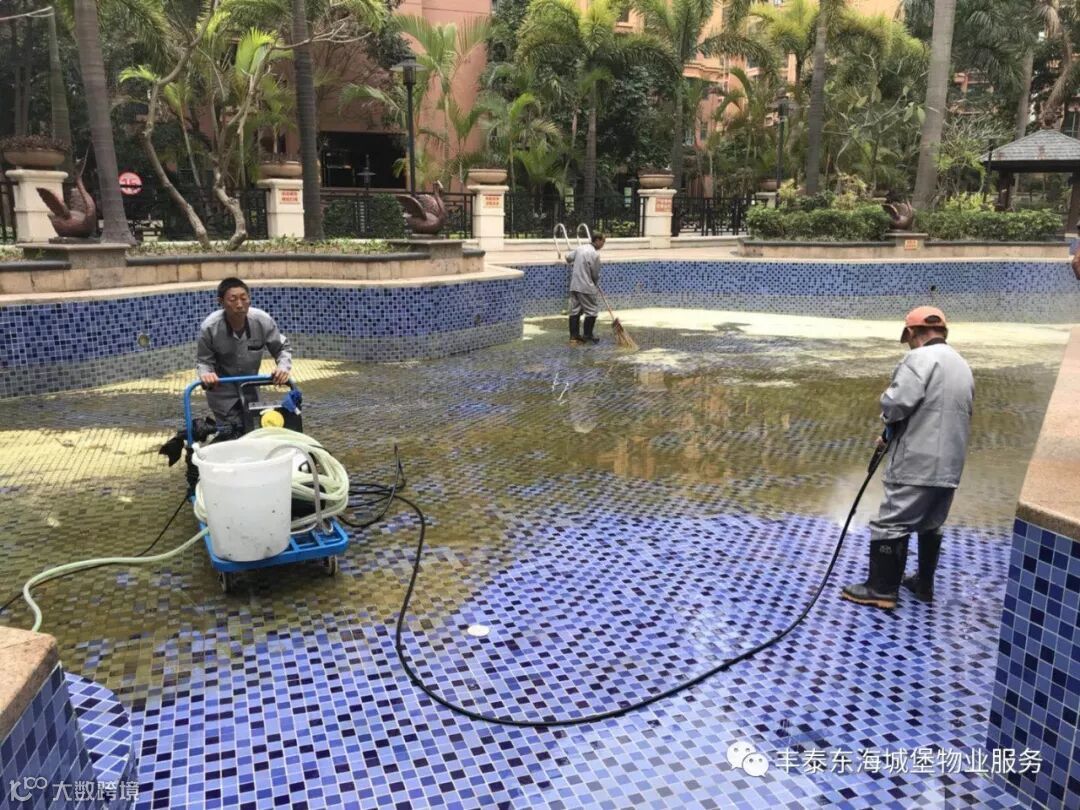 ▲冲洗游泳池▲