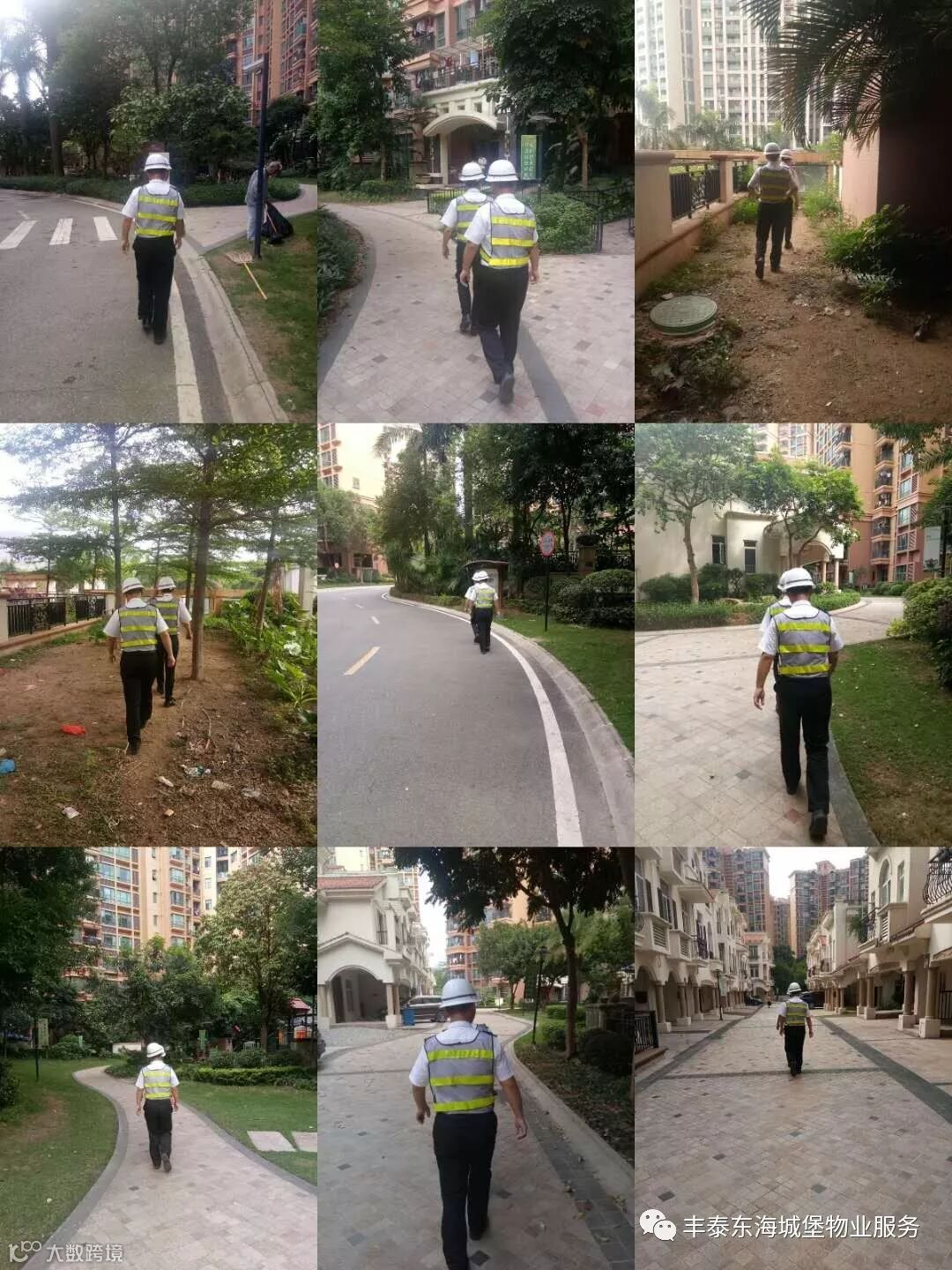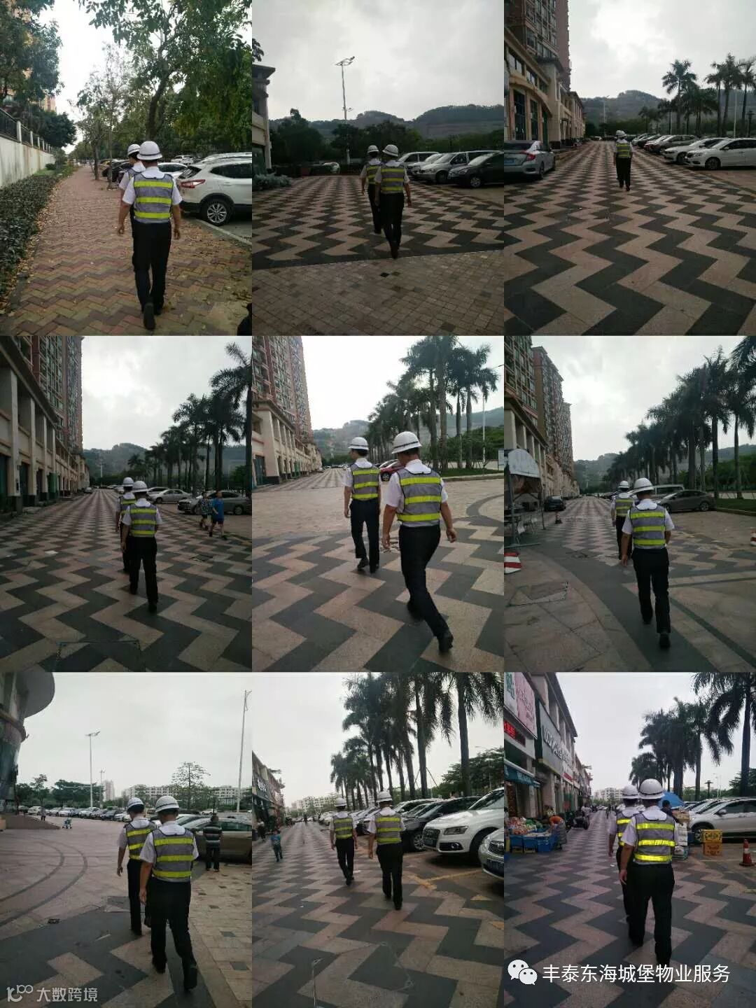 ▲日间秩序队员对小区外围商铺、小区内主干道进行巡查▲