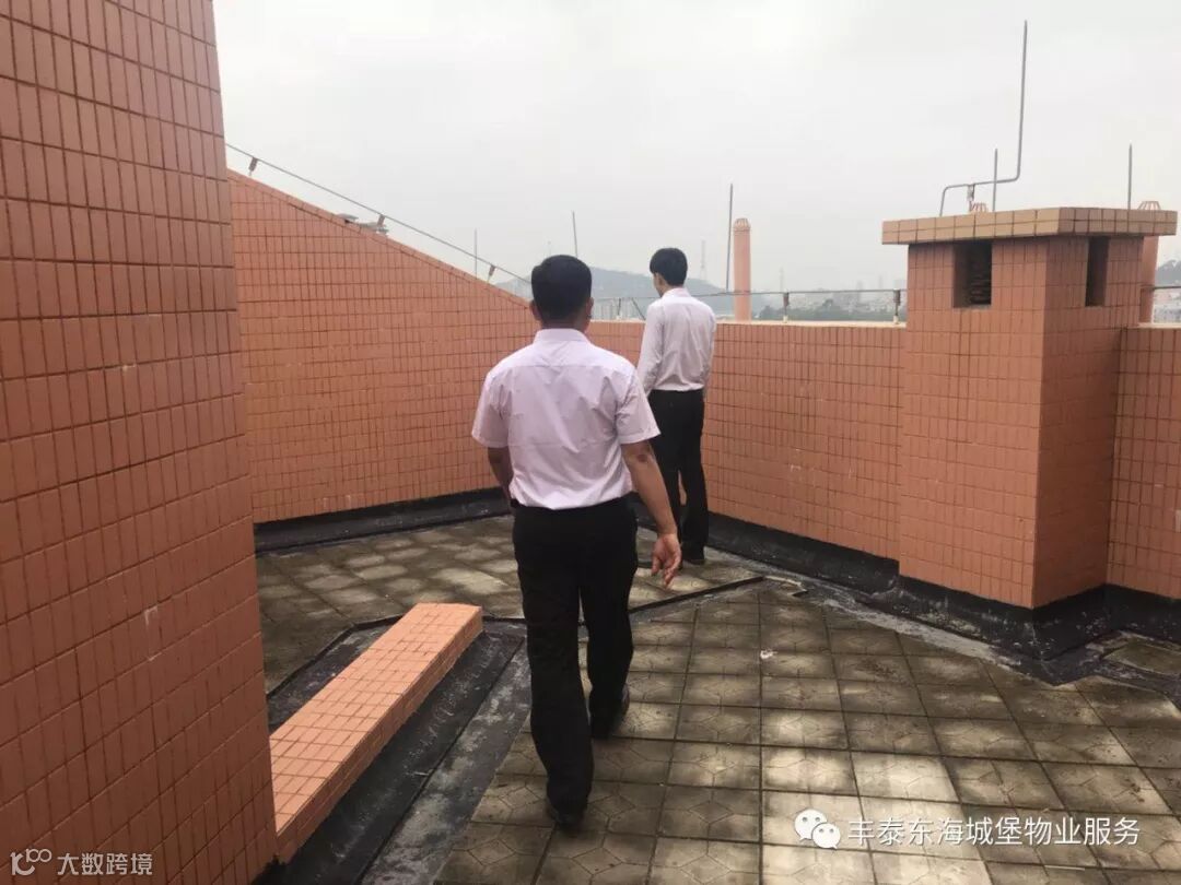 ▲雨天巡查楼顶排水情况▲