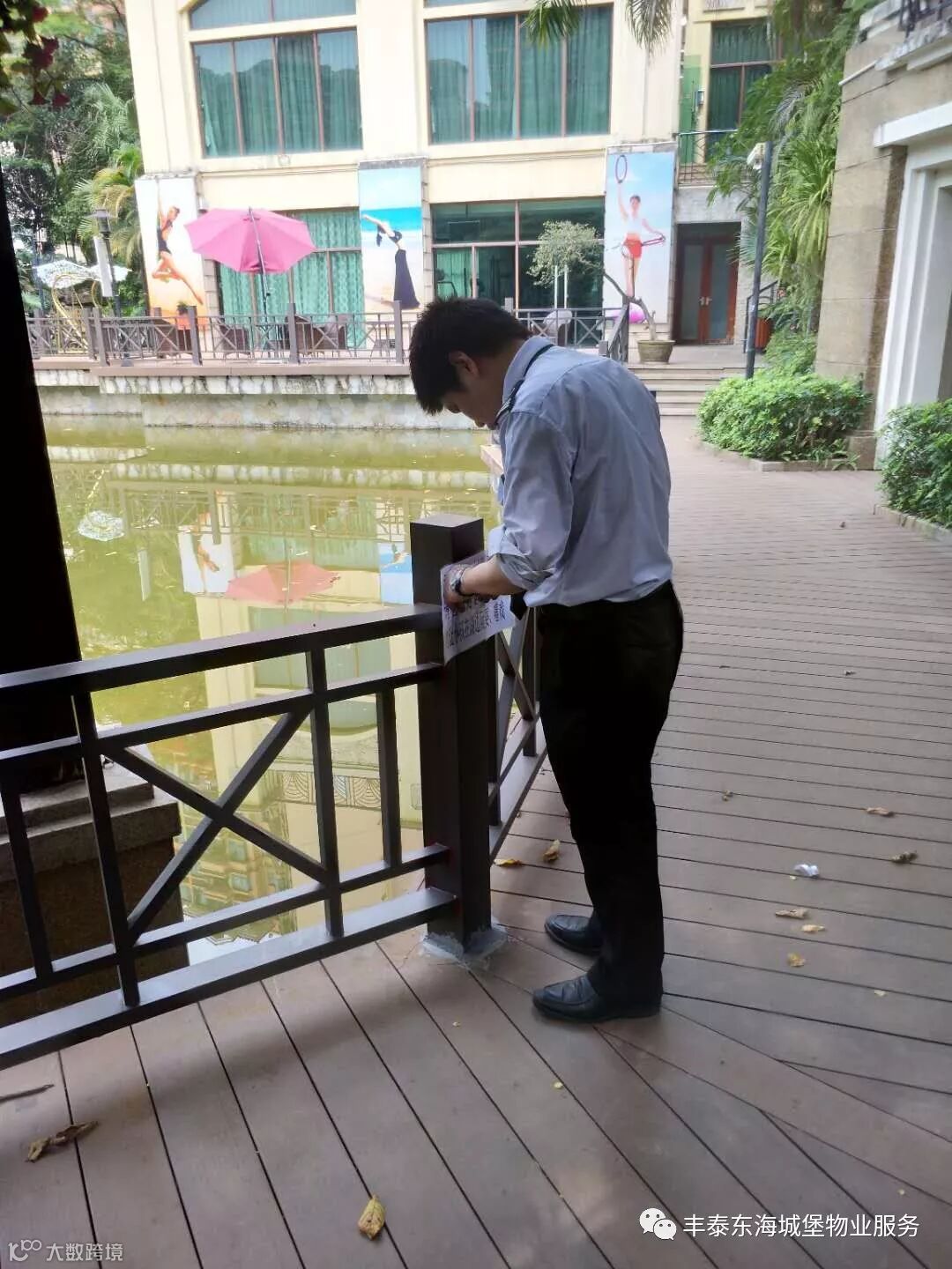 ▲更换护栏后张贴温馨提示▲