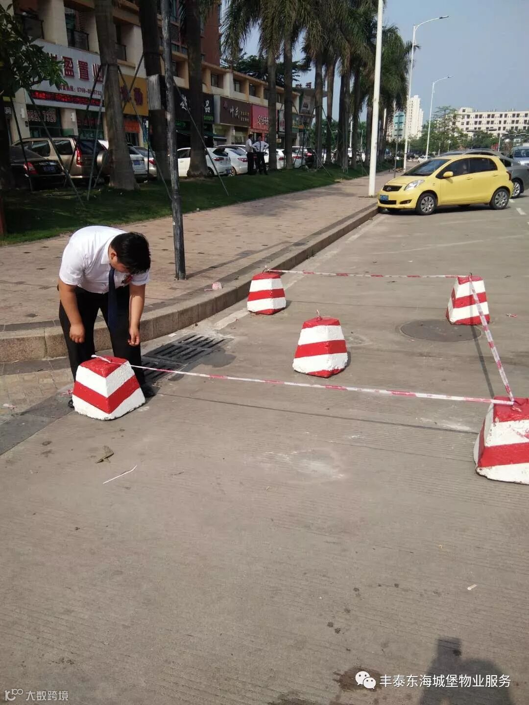 ▲整理09岗旁边石墩,保持车辆流畅▲