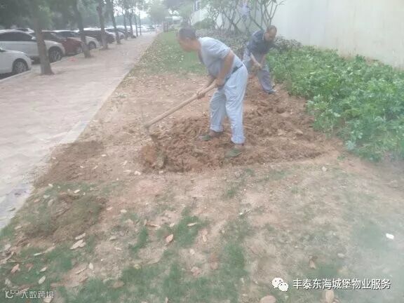 ▲对15栋旁边绿化进行补种▲