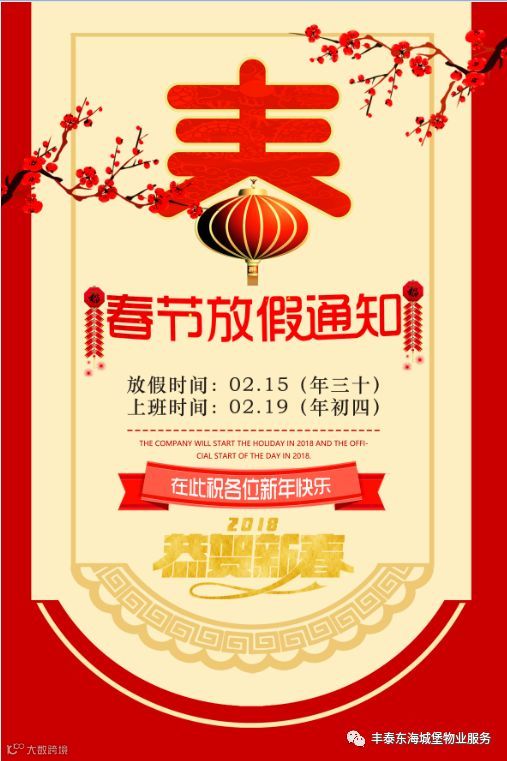 为了您和家人渡过一个愉快、祥和、安全的春节。物业服务中心在加强日常巡逻的同时也提醒各位业户: