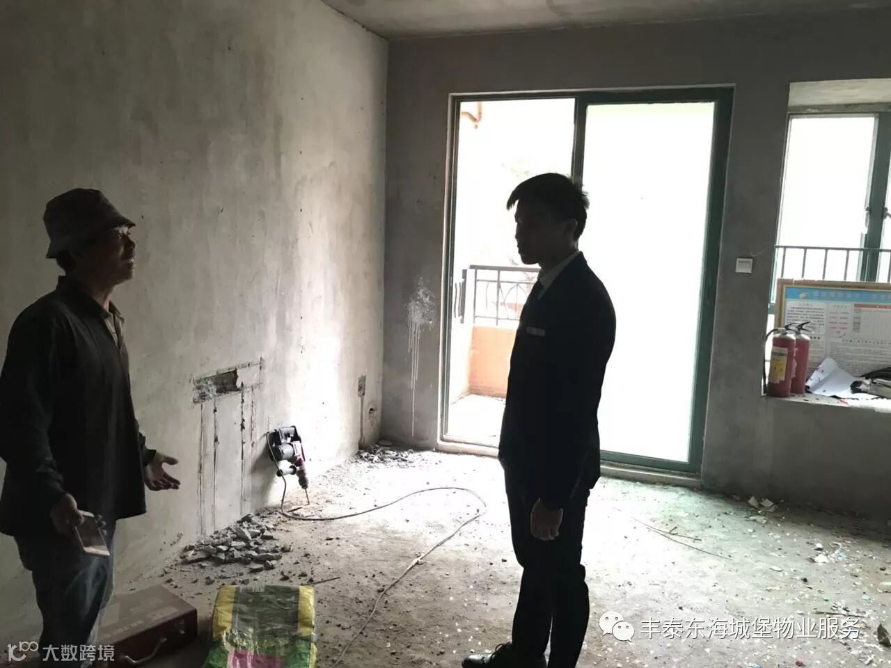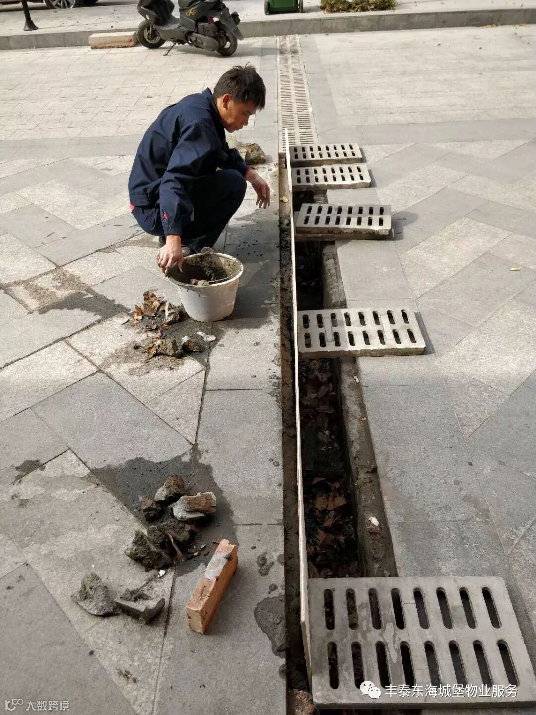 4、对公共走廊脱落的瓷砖进行修补