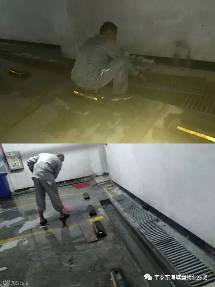 1、对小区车库进行全面冲洗