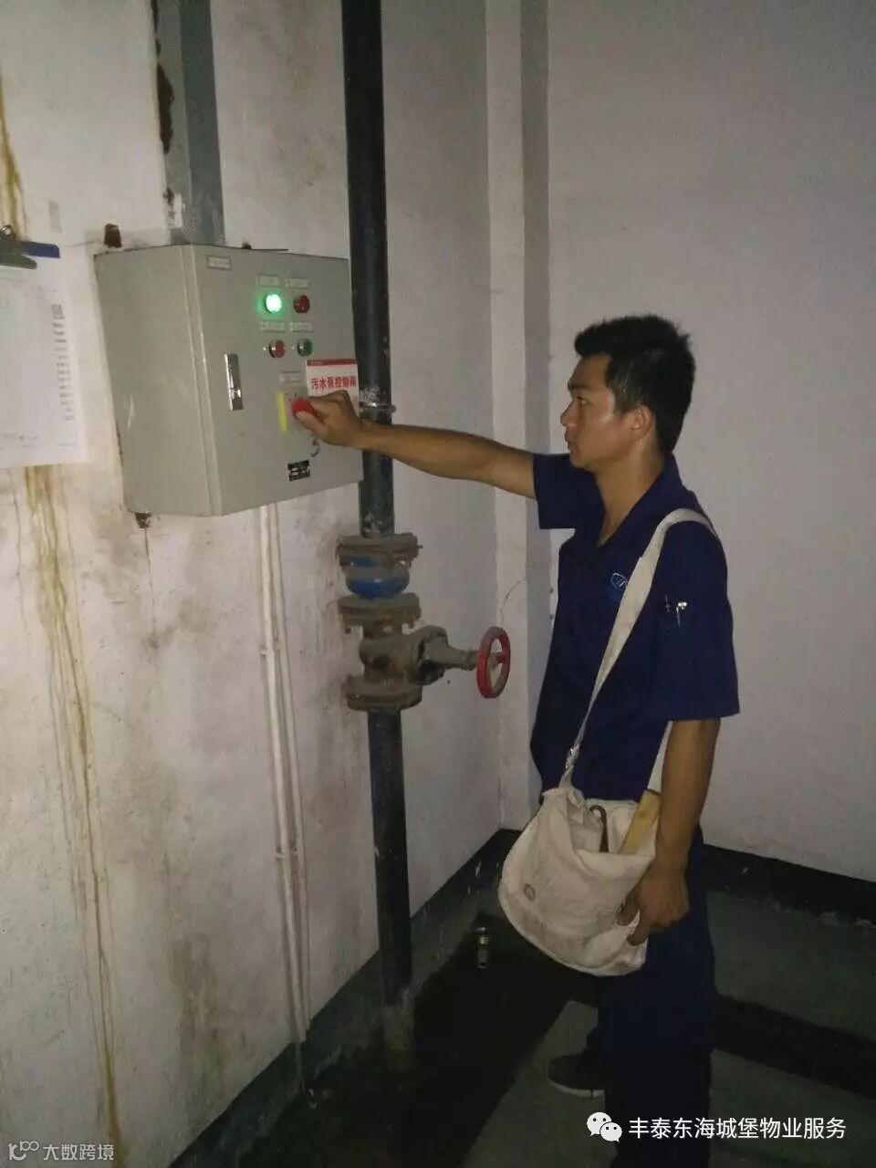 早晨8:40,谭工每天的第一项工作,从“工程重地”消防室、水泵房的巡视开始。