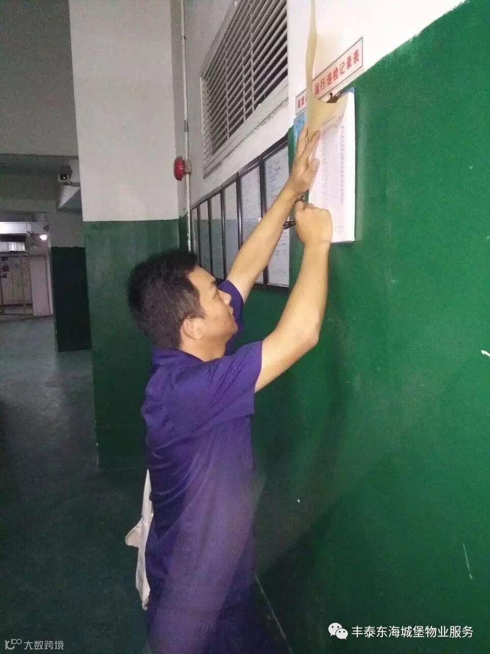 最后对配电房检查设备设施,巡查电梯运行情况,并做好一天下来的记录。