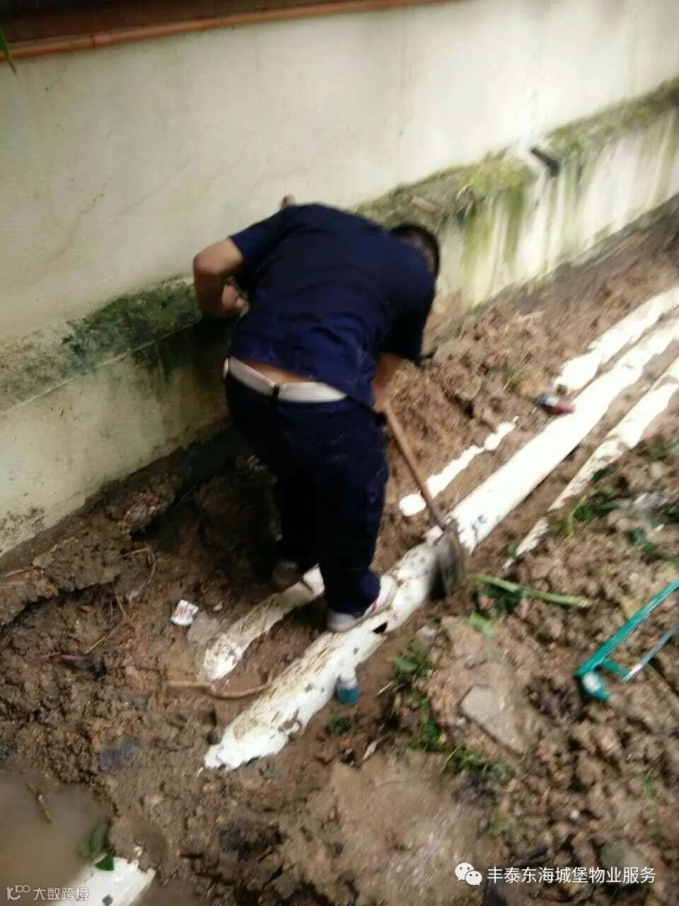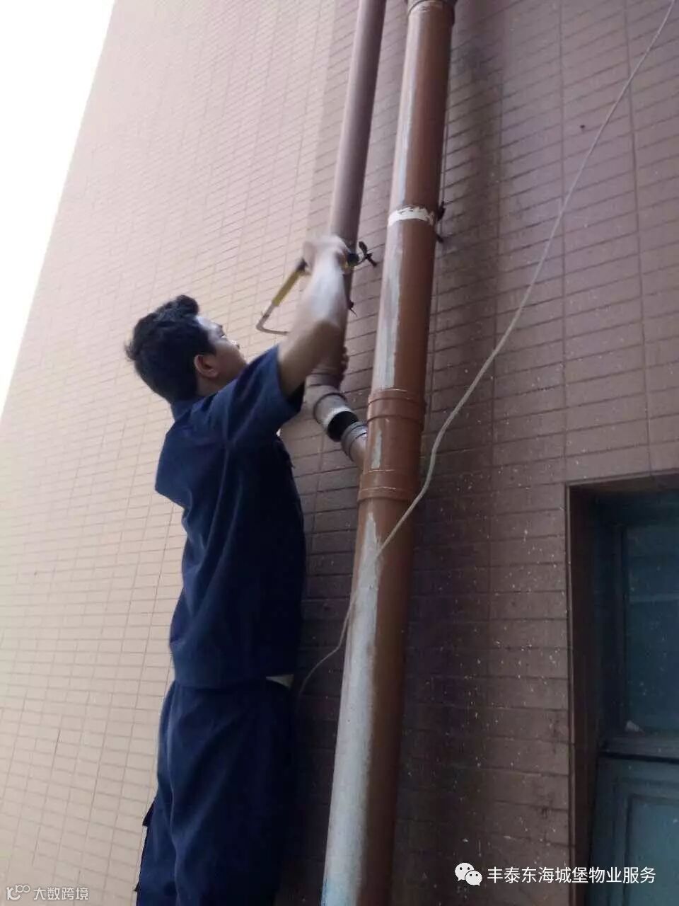 17:00接到区域管家电话通知,发现楼层外排水管有漏水情况,马上到场检修。